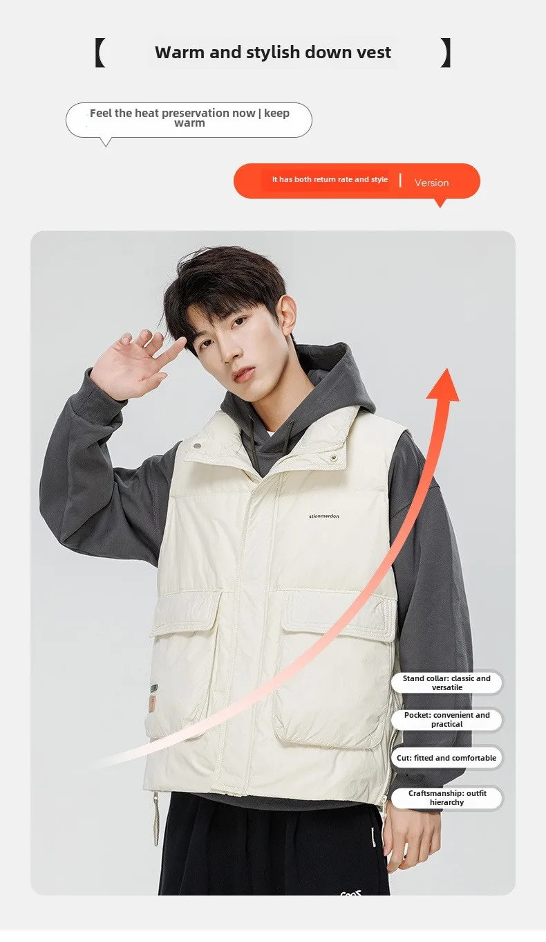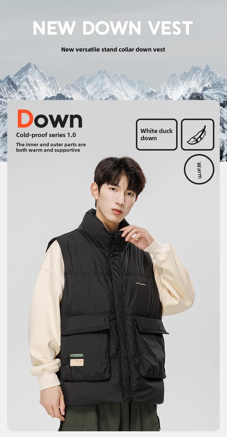 Men’s New Arrival Winter Sports Casual Outwear Fashionable Brand Sleeveless Waistcoat with Stand Collar Zipper Heattech Workwear