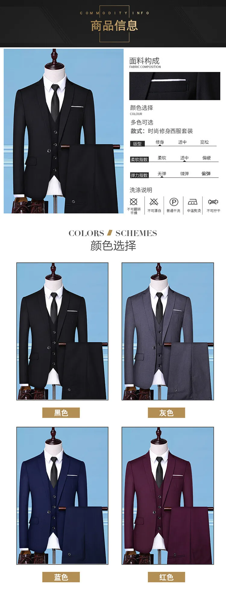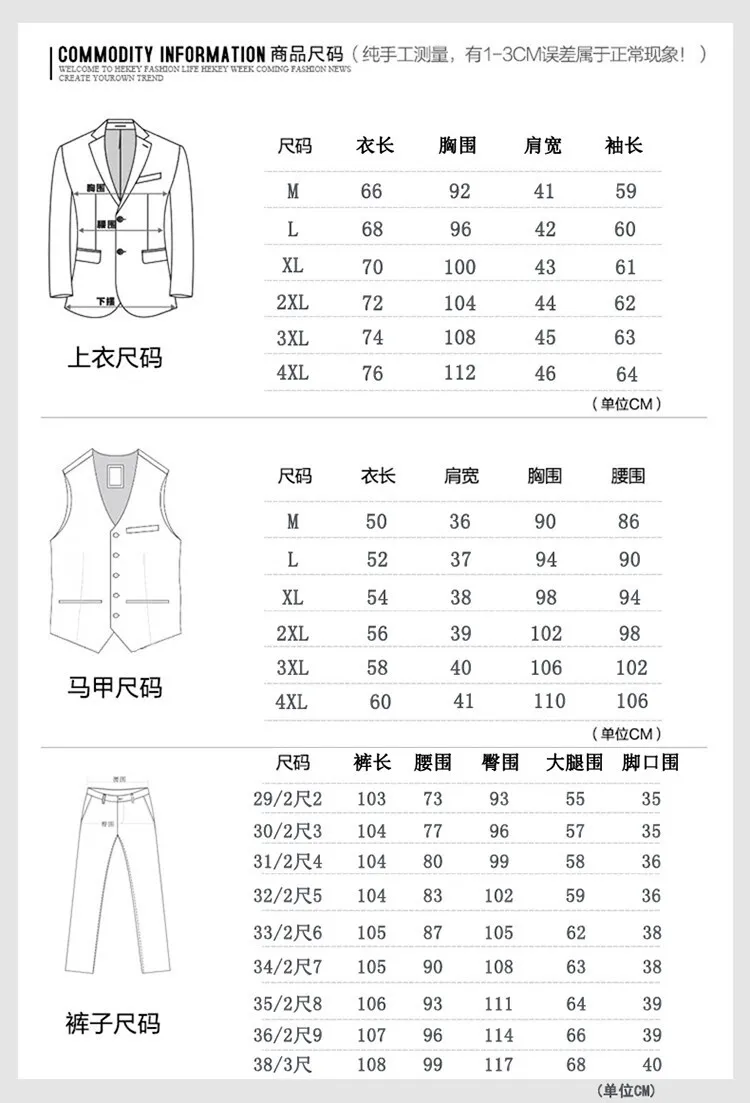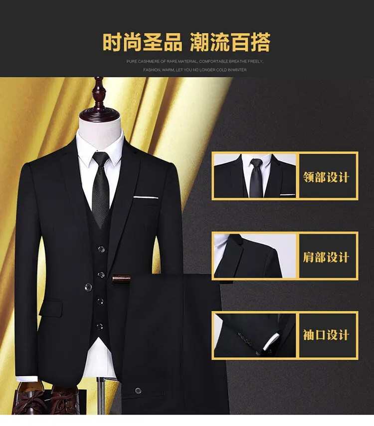 Men’s New Spring Slim-Fit Three-Piece Business Suit Korean Casual Style Button Fly Pants Single Breasted Wedding Apparel Worsted