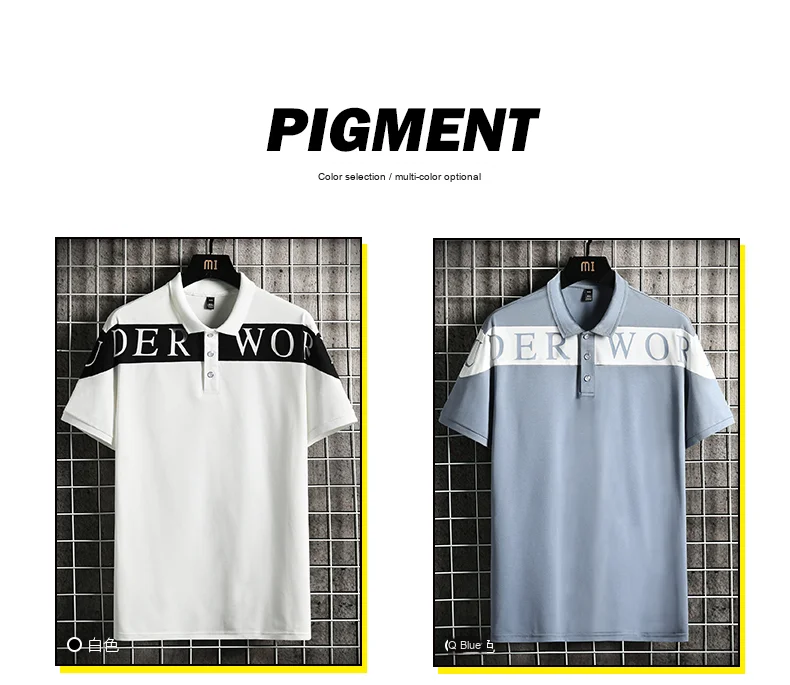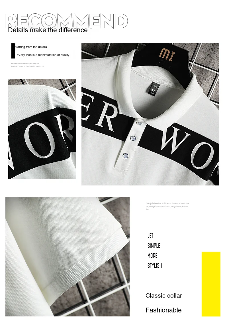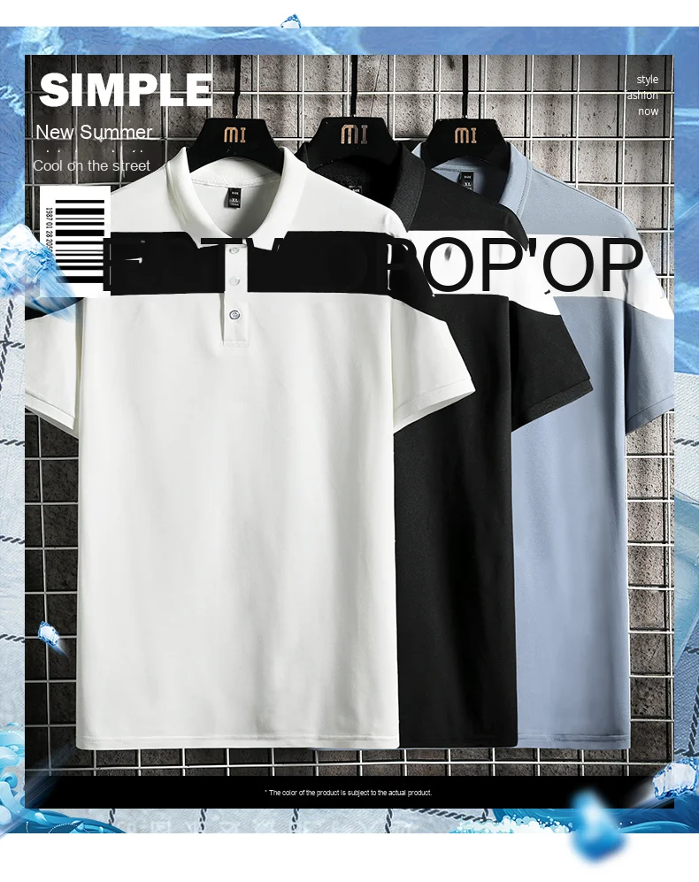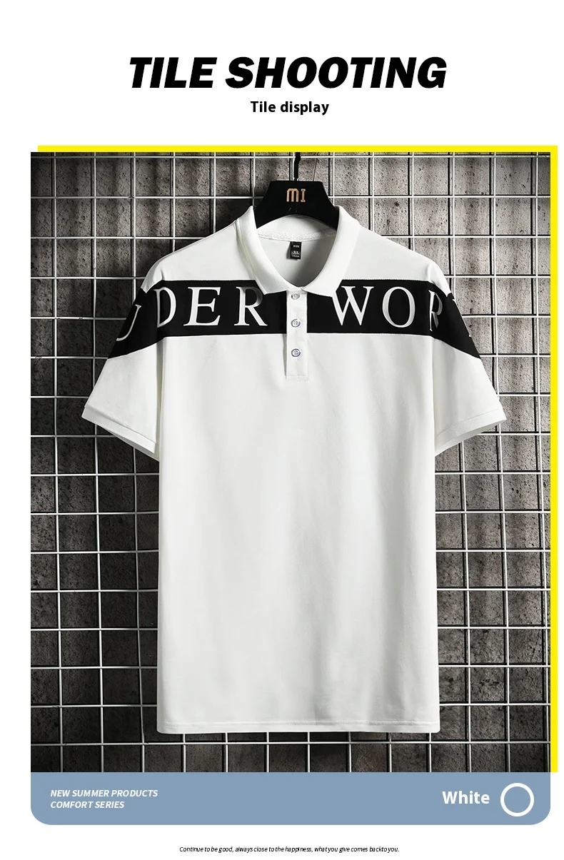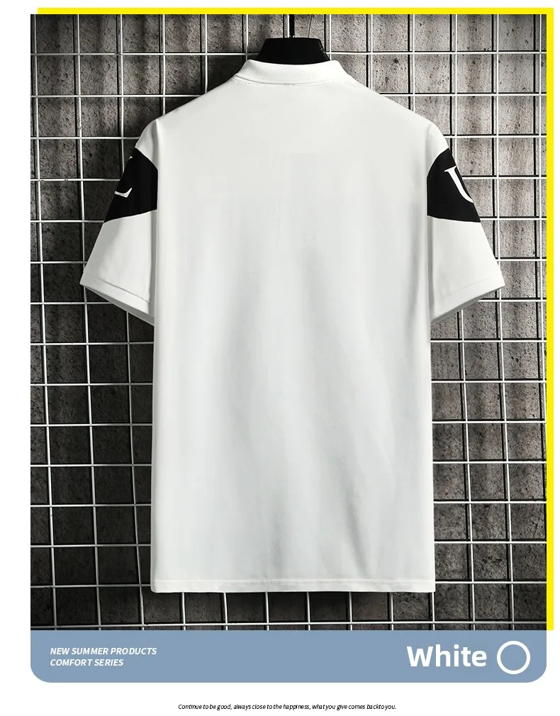 Men’s New Summer Slim for Polo T-Shirt Wild Plaid Collar Lapel Solid Woven Business Casual Advertising Knitted Skin Anti-Pilling