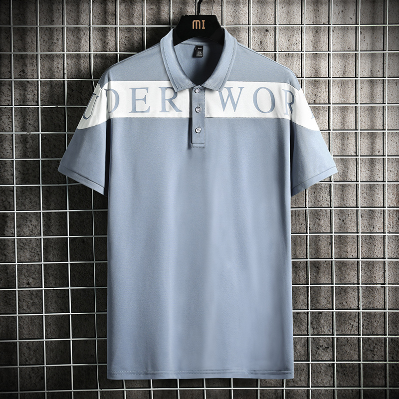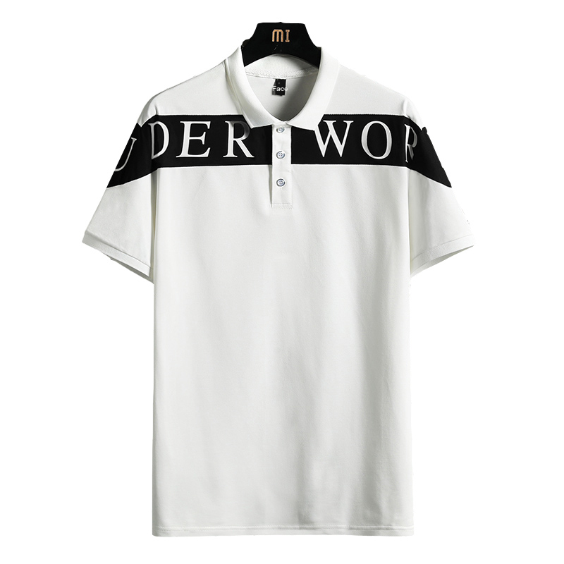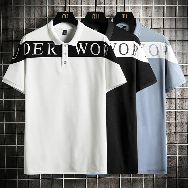 Men’s New Summer Slim for Polo T-Shirt Wild Plaid Collar Lapel Solid Woven Business Casual Advertising Knitted Skin Anti-Pilling