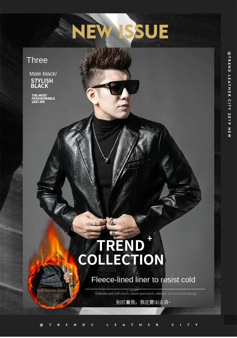 Men’s ODM Casual Fleece-Lined Leather Bomber Jacket for Winter High Quality PU Material Autumn New Style with Generational Lapel