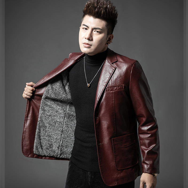 Men’s ODM Casual Fleece-Lined Leather Bomber Jacket for Winter High Quality PU Material Autumn New Style with Generational Lapel
