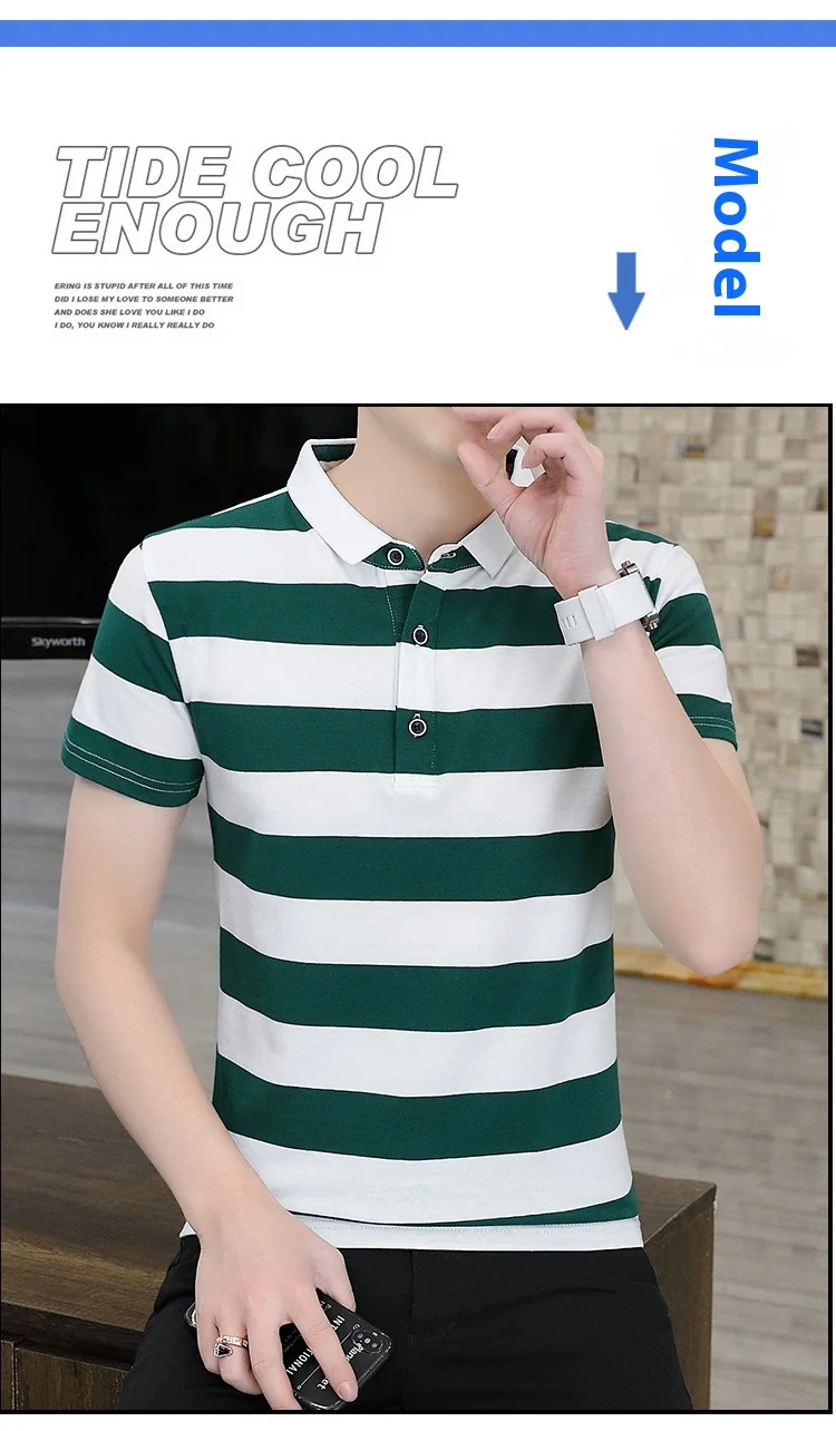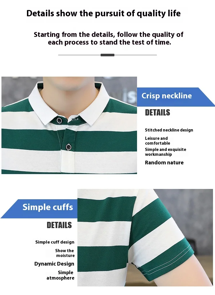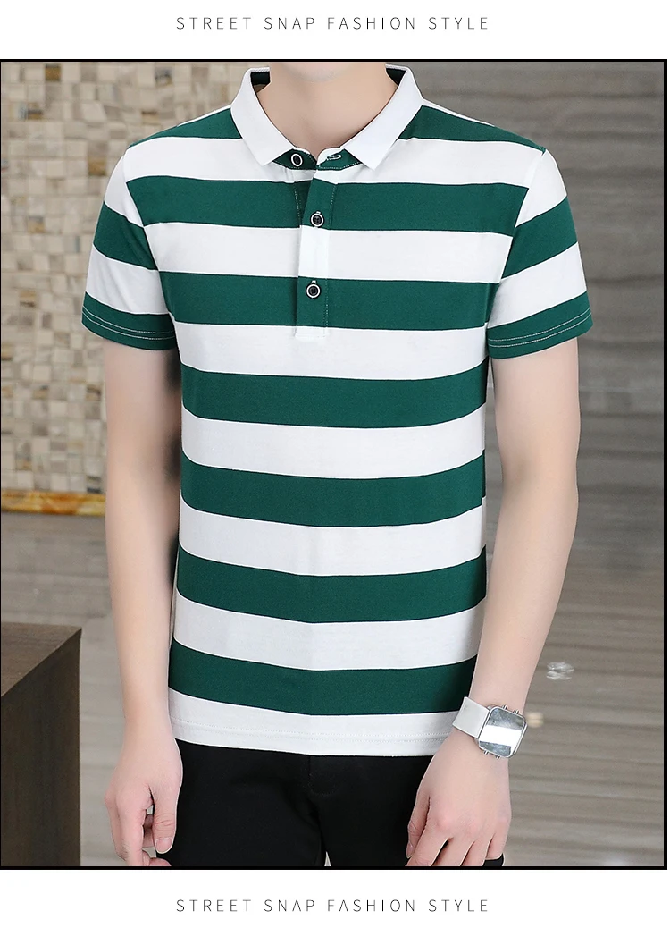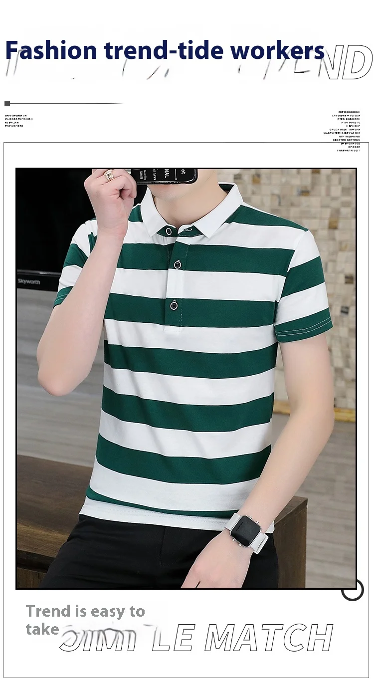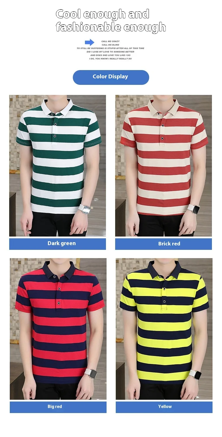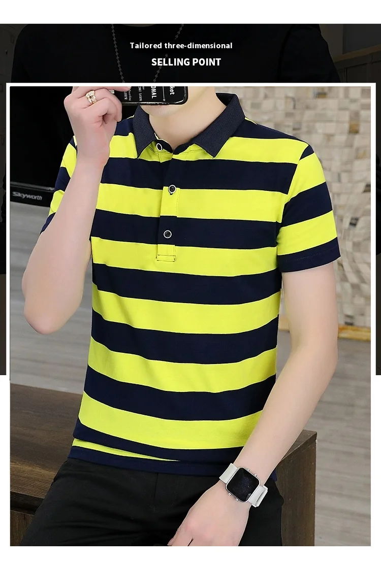 Men’s Quick-Drying Cotton for Polo Shirt Striped Casual Bee Business Design XL Half-Sleeved Short-Sleeved Options Knitted Fabric