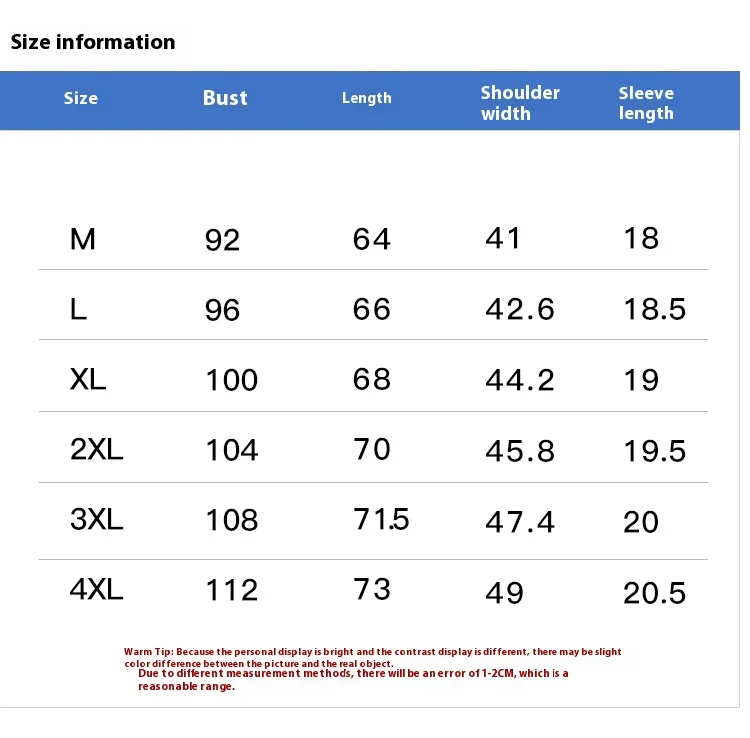 | Size | M, L, XL, 2XL, 3XL, 4XL |