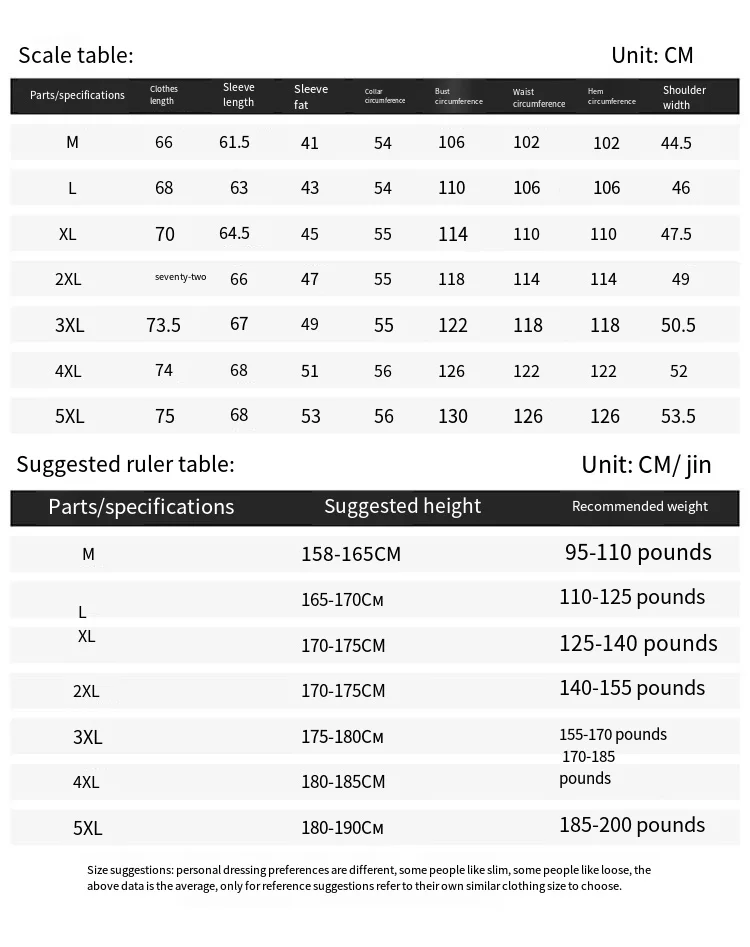 | Size | M, L, XL, 2XL, 3XL, 4XL, 5XL |