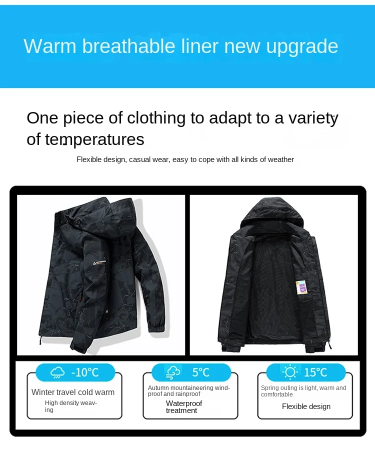 2024 Unisex Three-in-One Outdoor Assault Jacket Adults Men Women Autumn Winter Fleece-Lined Thickening Cotton Liner Two-Piece