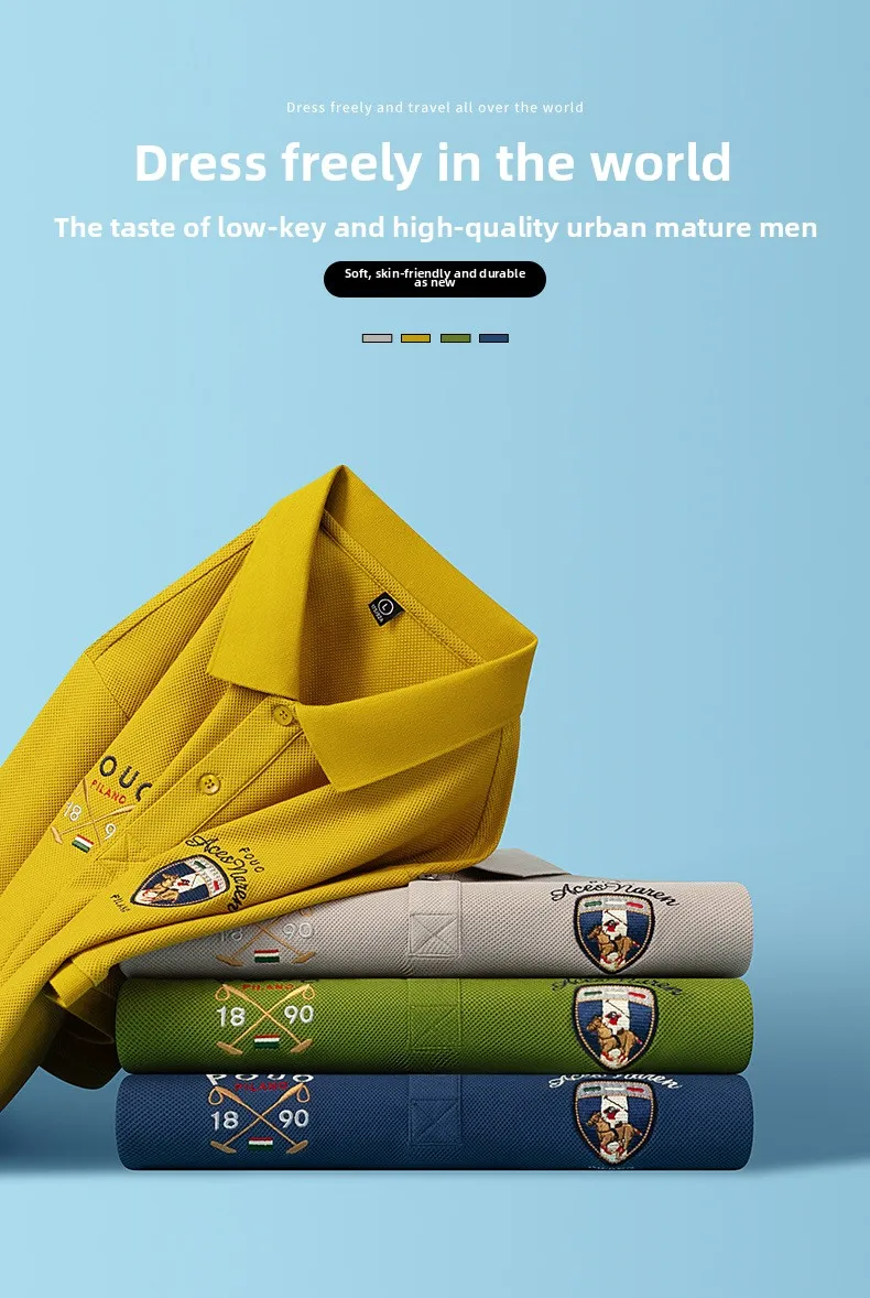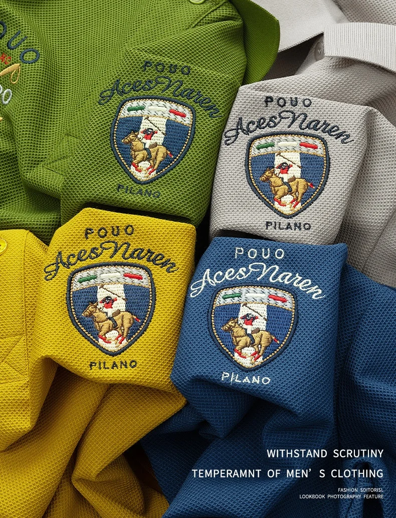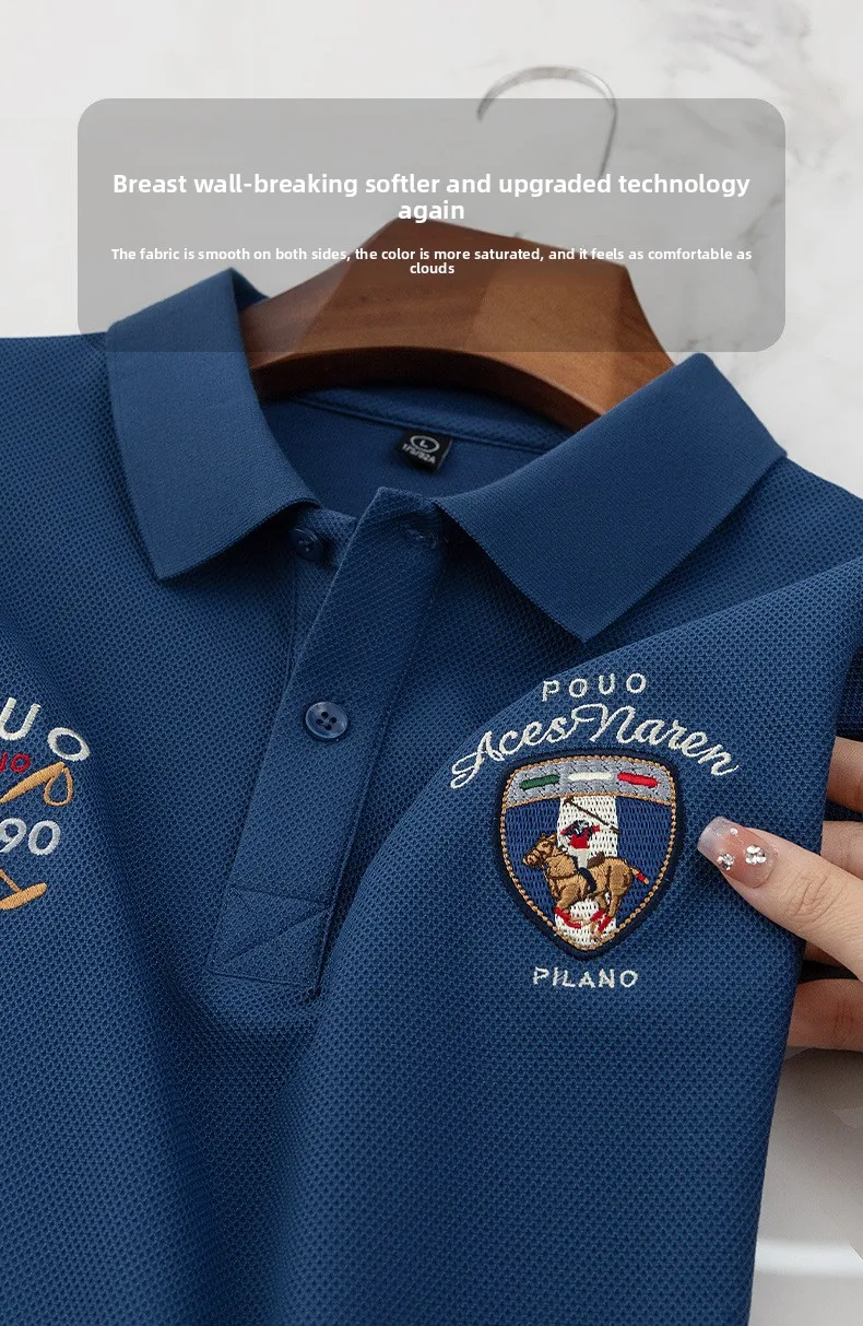 Men’s Short-Sleeved for Polo Shirt with Embroidered Pattern Button Decoration Custom Logo Print Made From Durable Fabric