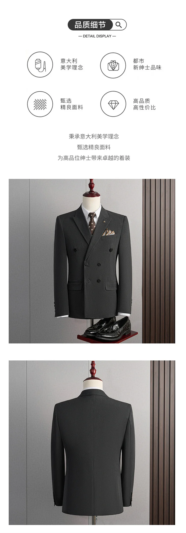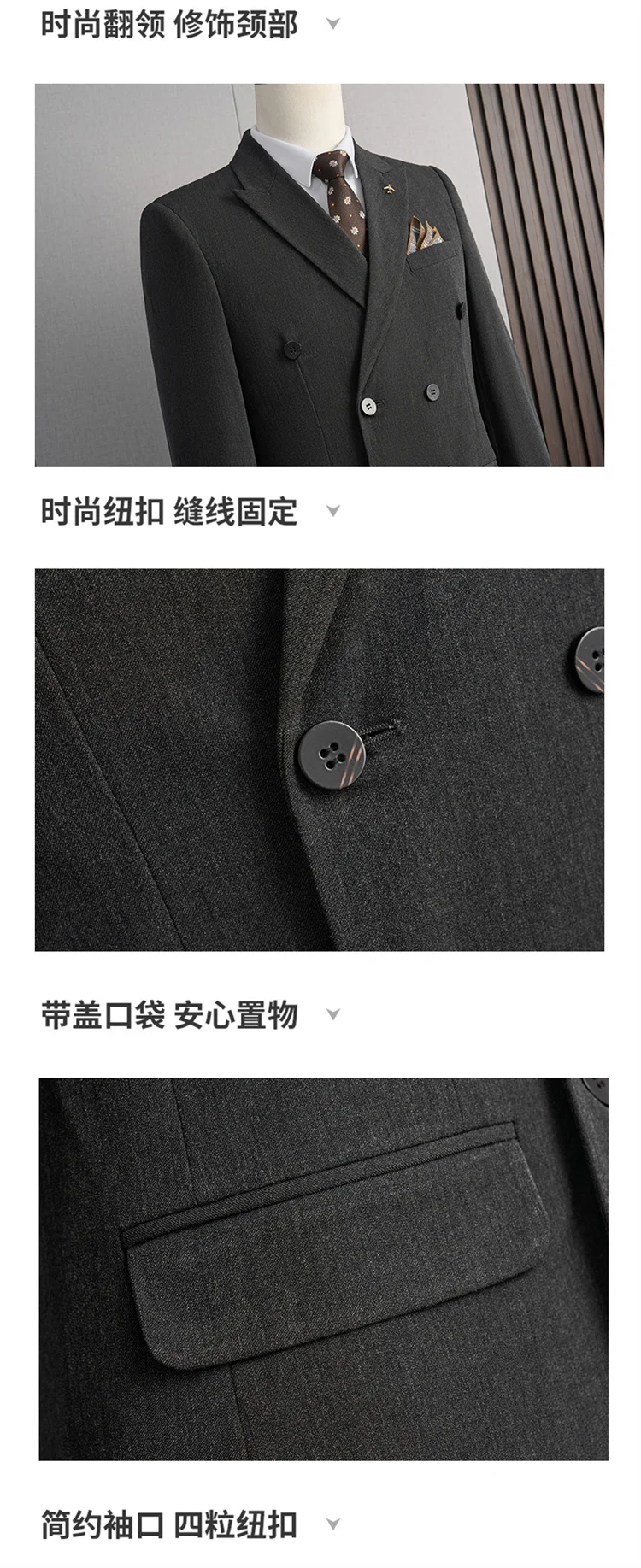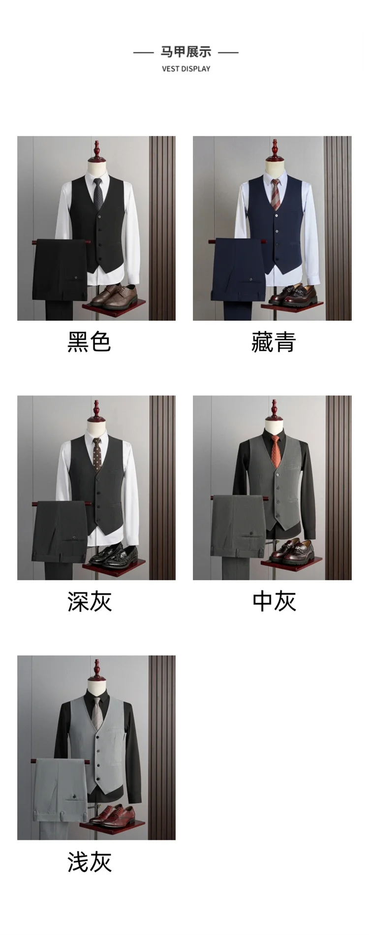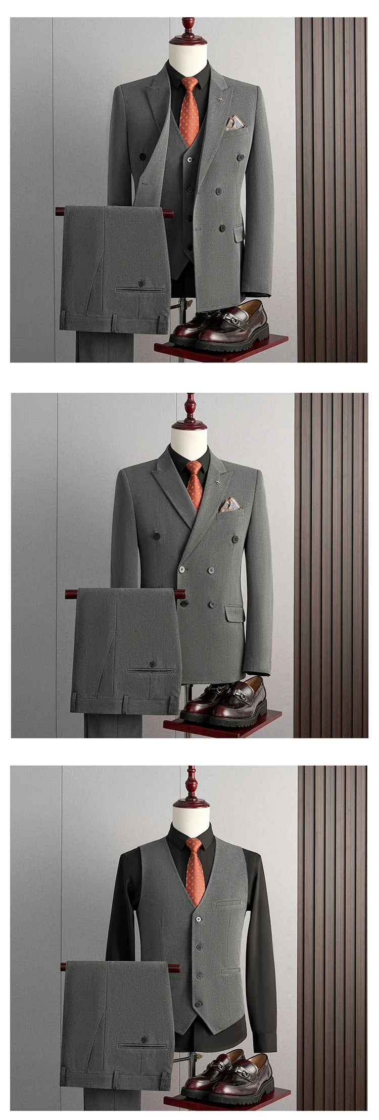 | Color | Black Three-piece set, Black two-piece, Blue Three-piece set, Blue two-piece, Dark gray Three-piece set, Dark gray two-piece, Light gray Three-piece set, Light gray two-piece, Medium grey Three-piece set, Medium grey two-piece |