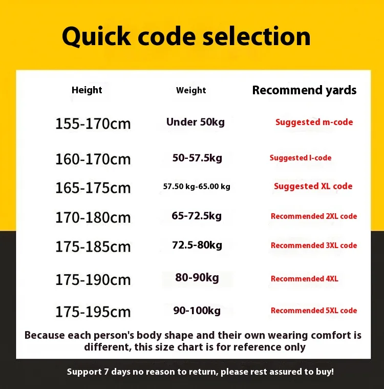 | Size | M, L, XL, 2XL, 3XL, 4XL |