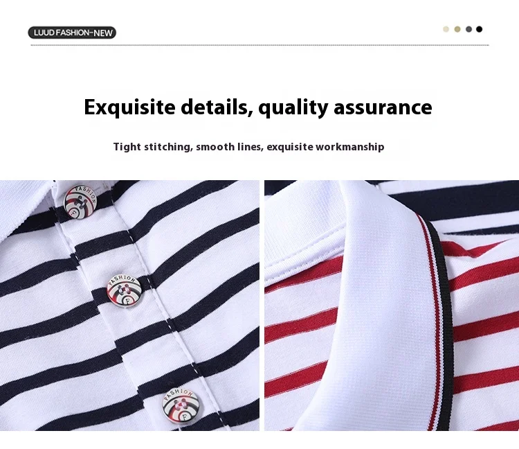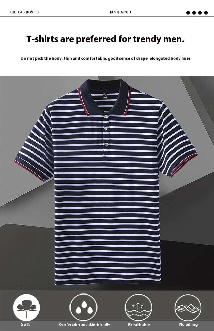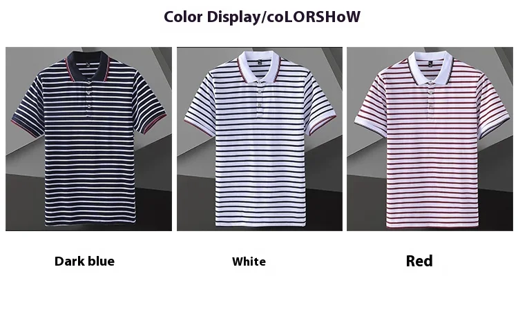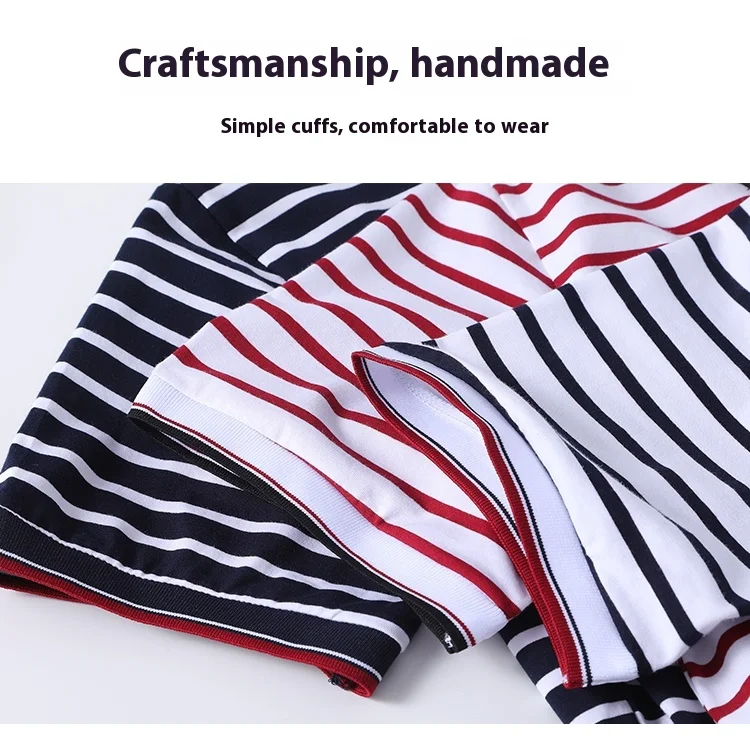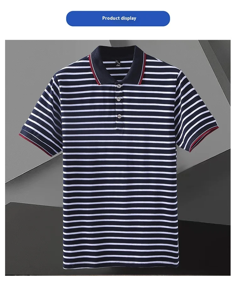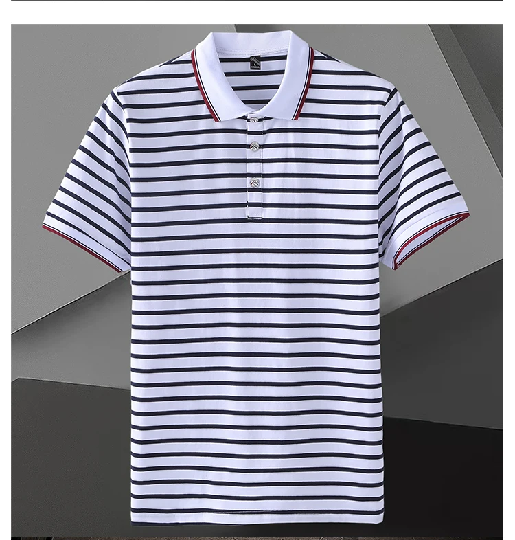 Men’s Striped Short-Sleeved for Polo Shirt for Spring Summer 100% Pure Cotton T-Shirt Same Style Printable Embroidered Design Ox
