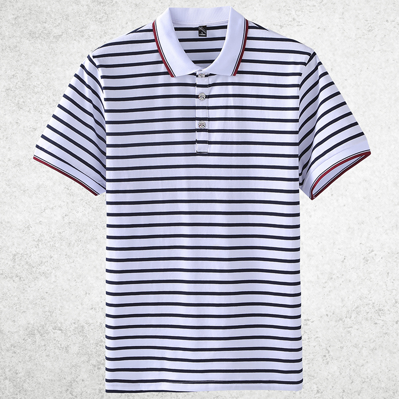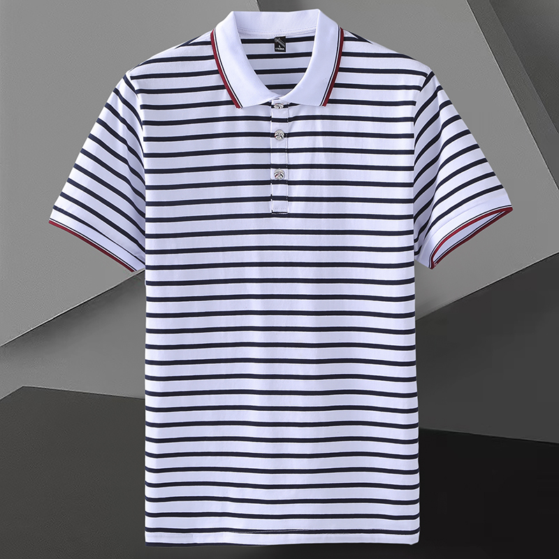 Men’s Striped Short-Sleeved for Polo Shirt for Spring Summer 100% Pure Cotton T-Shirt Same Style Printable Embroidered Design Ox