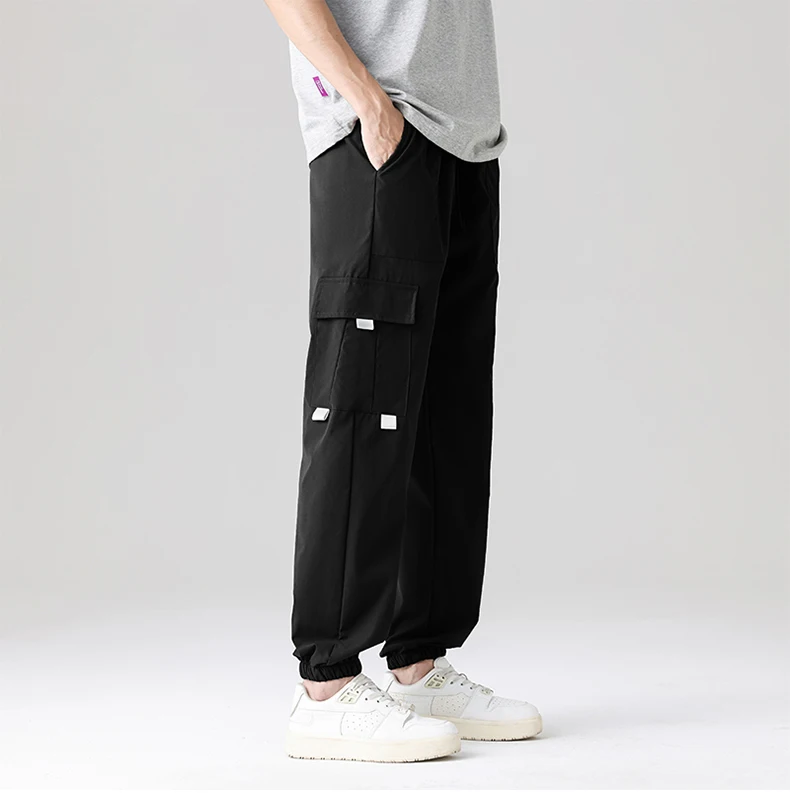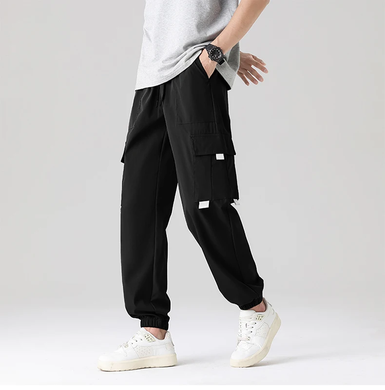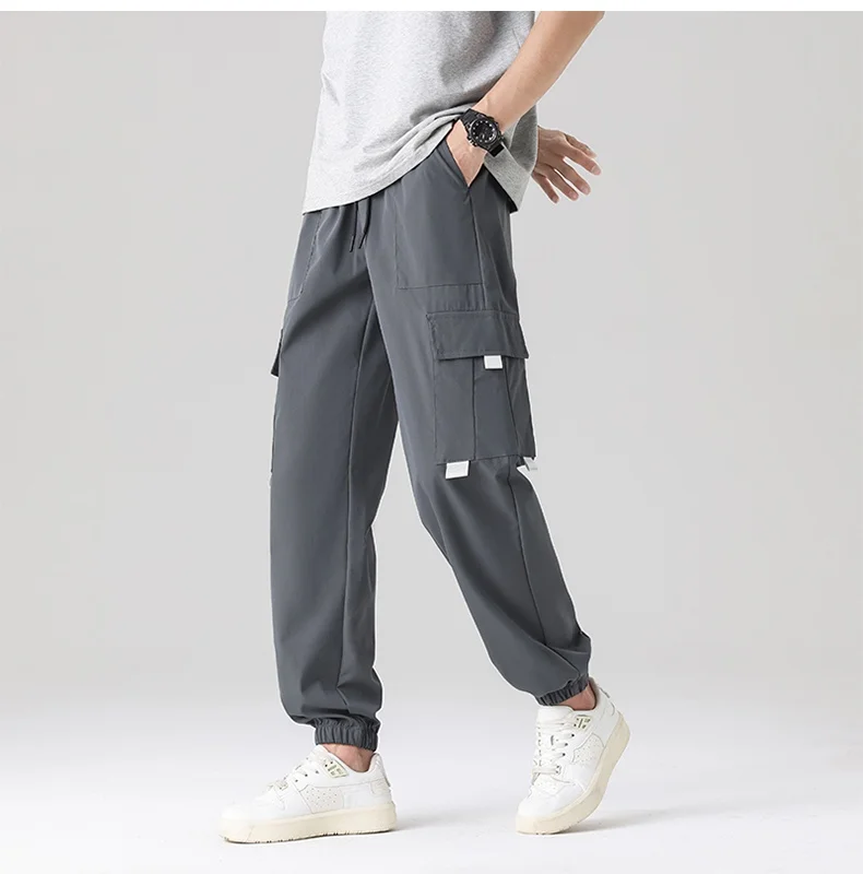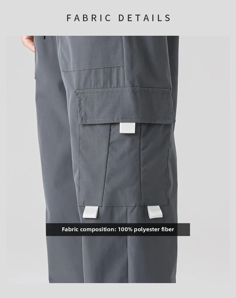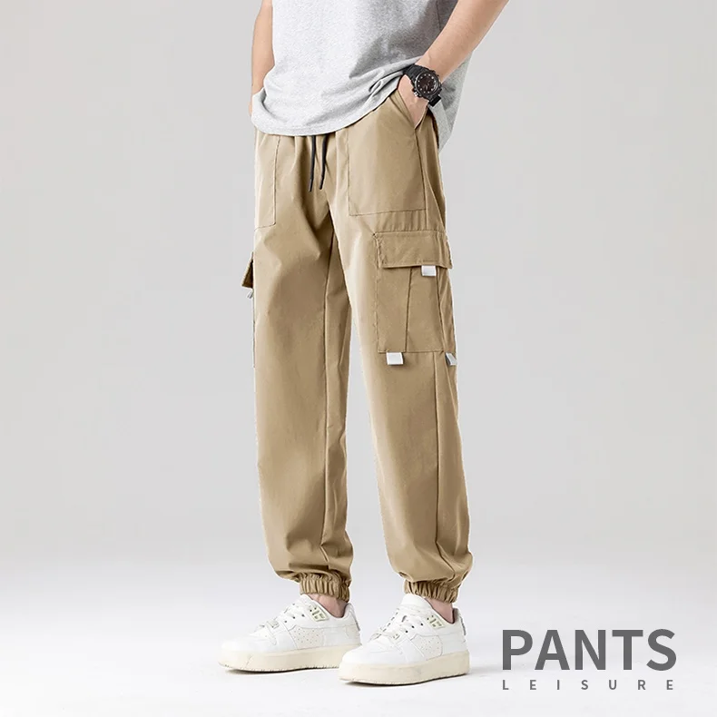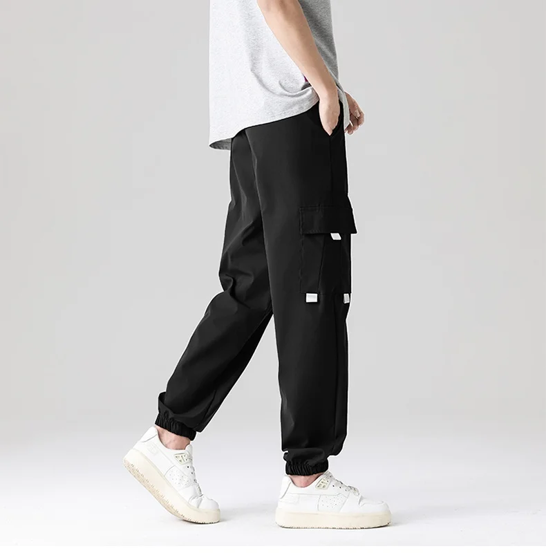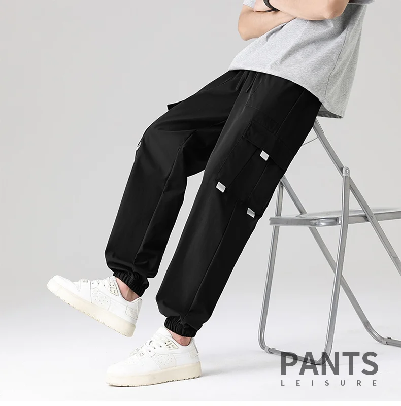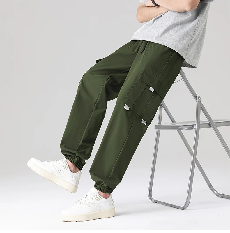 Men’s Summer Casual Multi-Pocket Cargo Jogger Pants Trendy Versatile Elastic Waist Mid Straight Loose Fit European Size Color