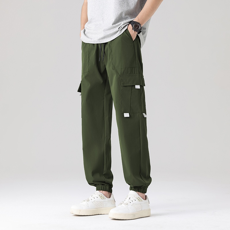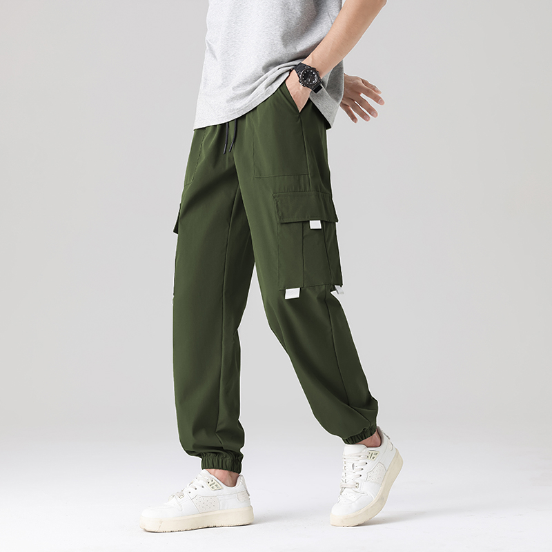 Men’s Summer Casual Multi-Pocket Cargo Jogger Pants Trendy Versatile Elastic Waist Mid Straight Loose Fit European Size Color