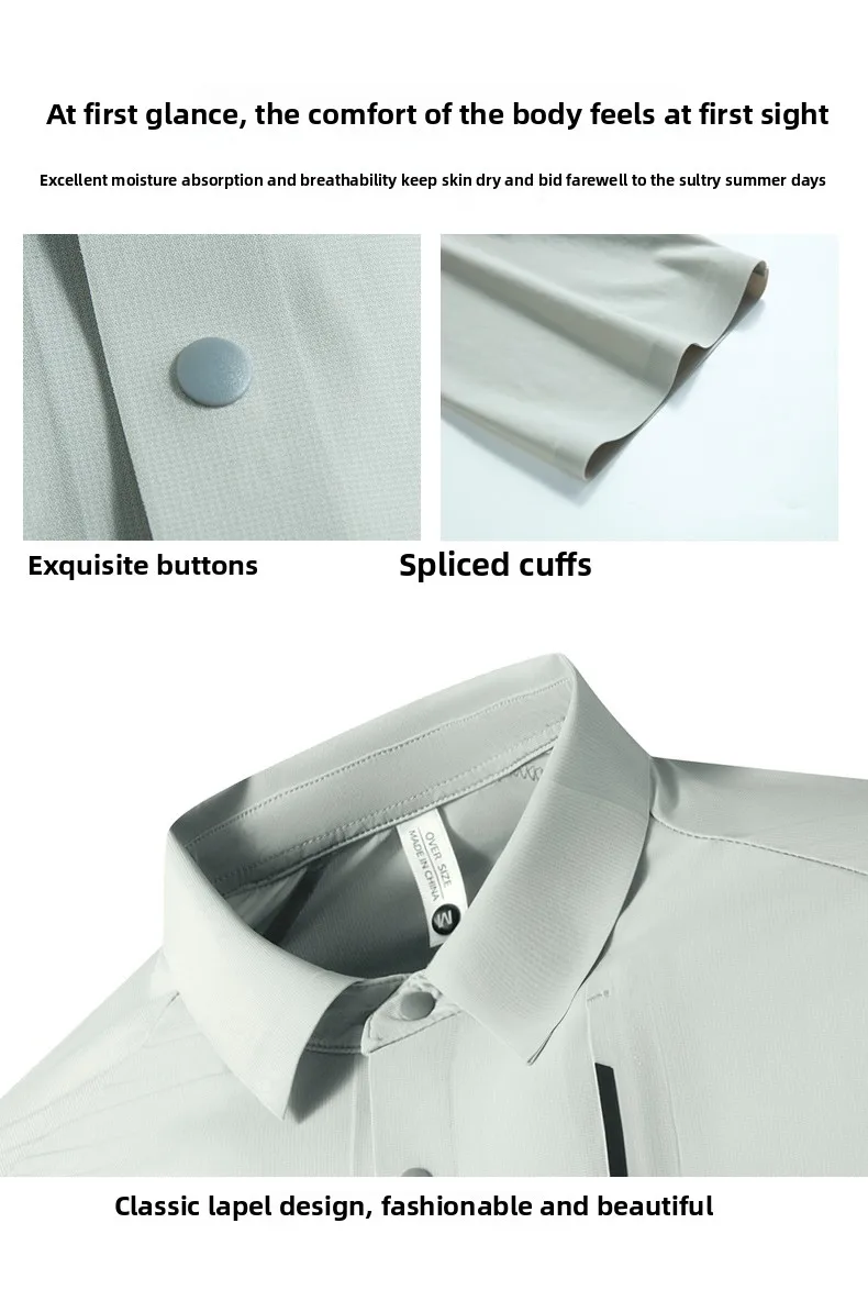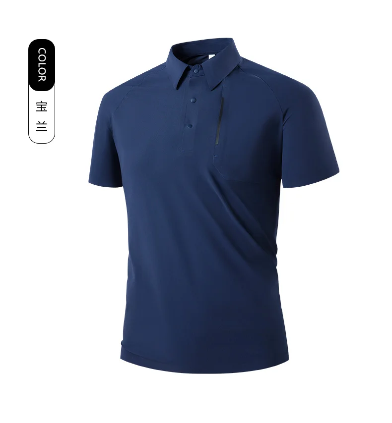 Men’s Summer Comfortable Ice Silk for Polo Shirt Casual Business Two-Tone Breathable Turn-Down Collar Dark Seamless Plain Dyed S