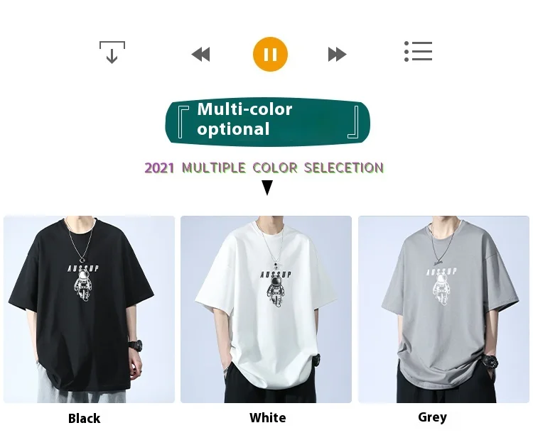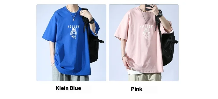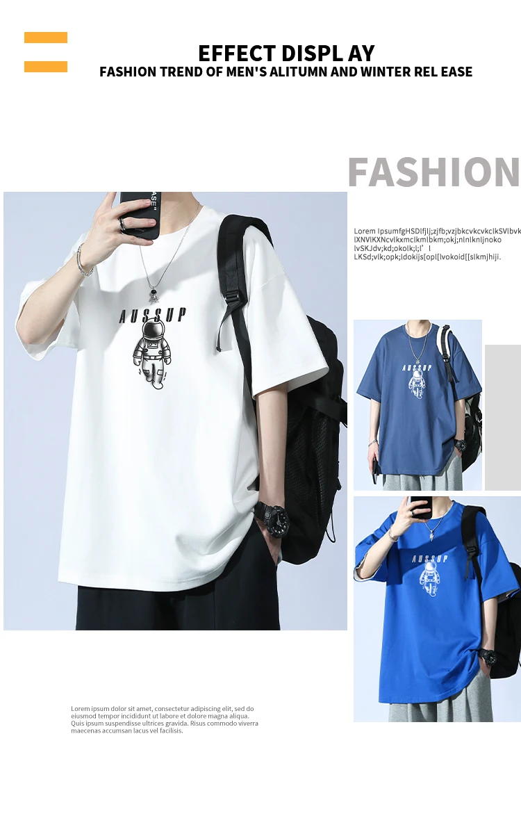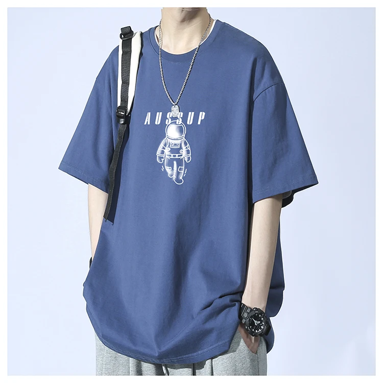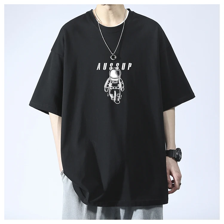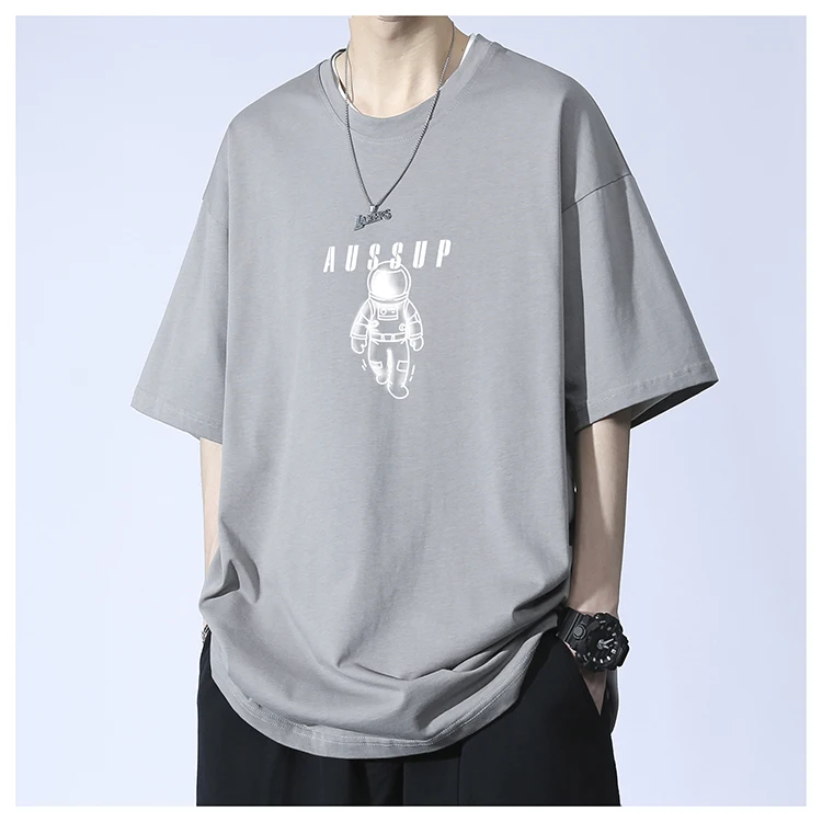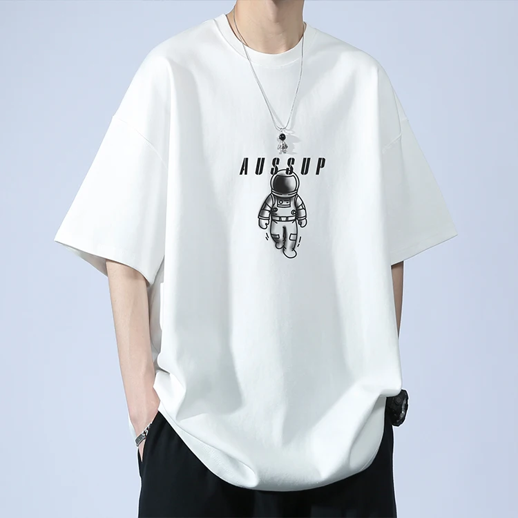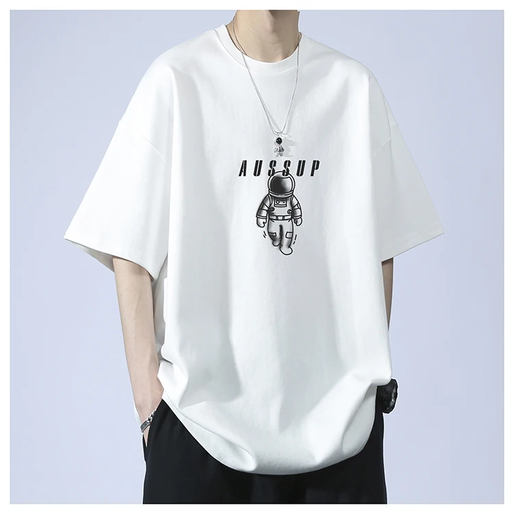 Men’s Summer Fashion Casual T-Shirt Brand-Printed Astronaut Short-Sleeved Loose Fit 100% Pure Cotton American Style Solid
