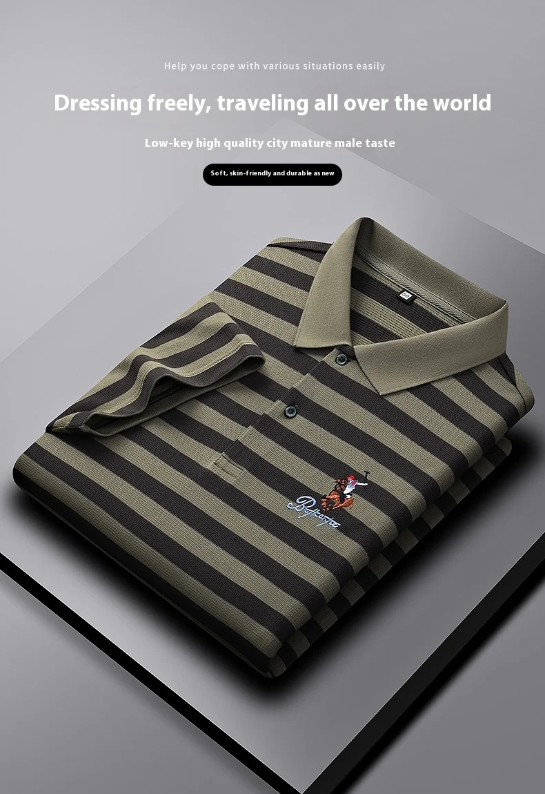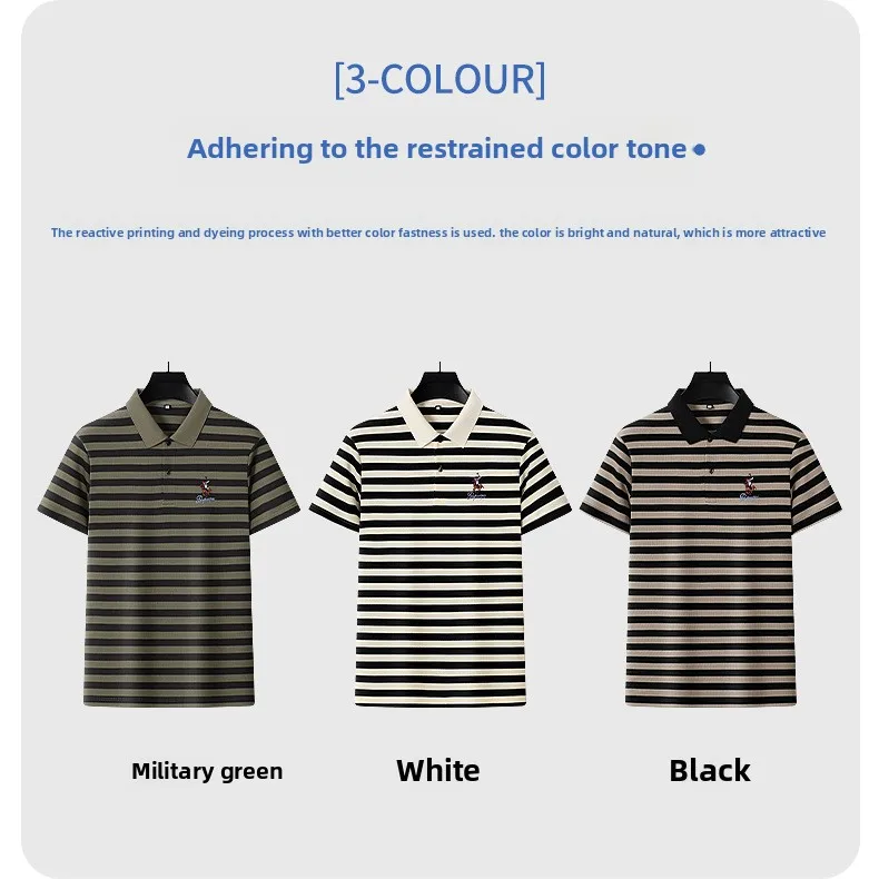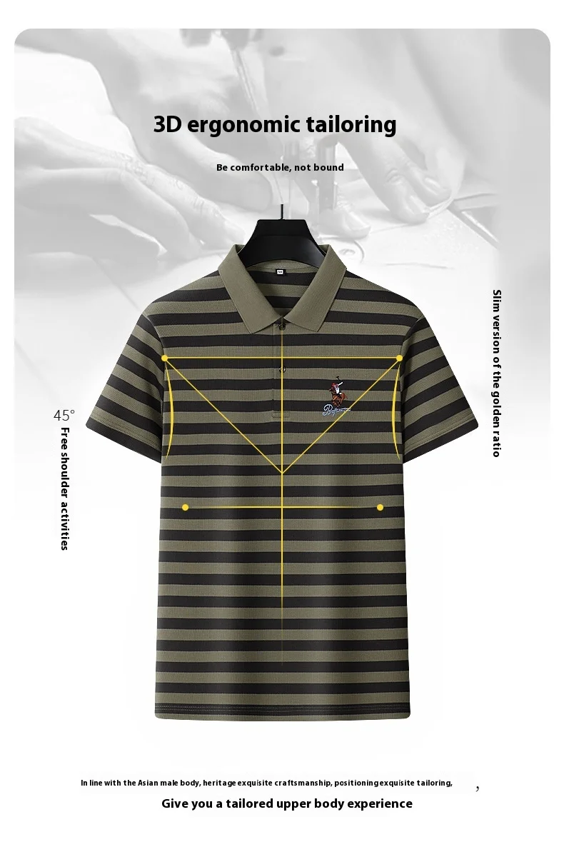 Men’s Summer Lightweight Luxury Spandex T-Shirt Breathable Striped for Polo Shirt Blanks Sizes 6XL Customizable ODM Sublimation