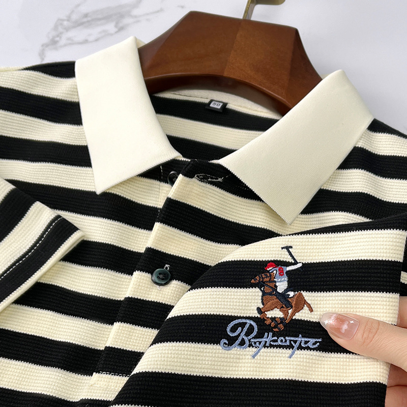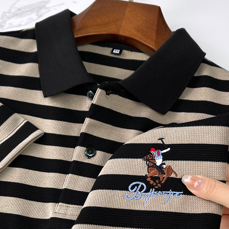 Men’s Summer Lightweight Luxury Spandex T-Shirt Breathable Striped for Polo Shirt Blanks Sizes 6XL Customizable ODM Sublimation