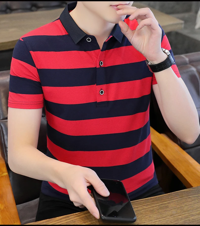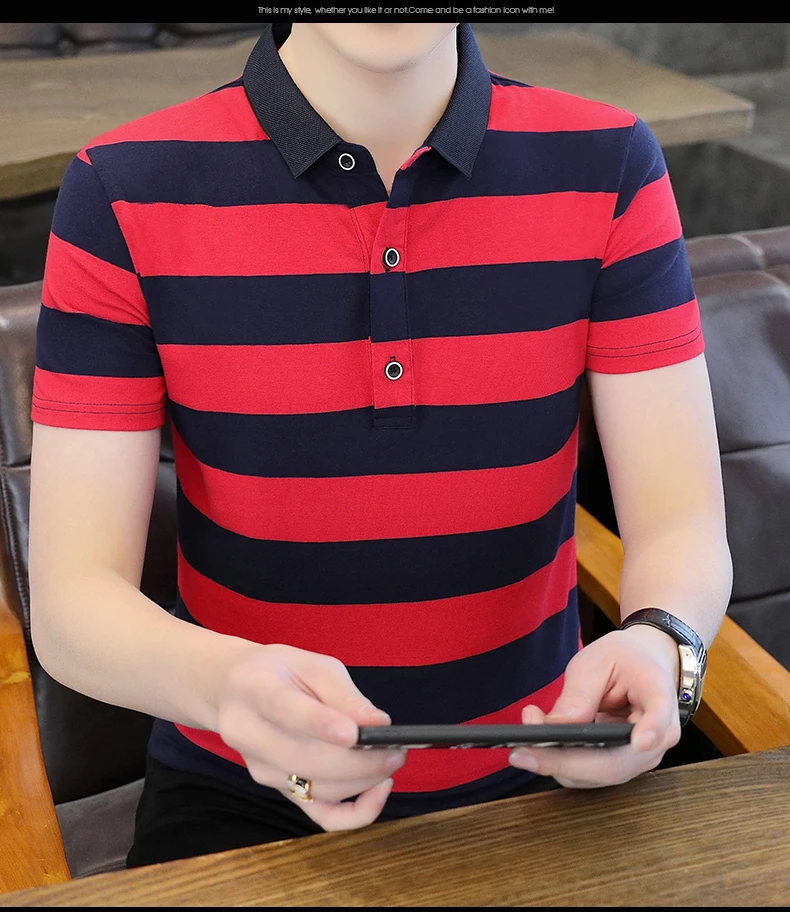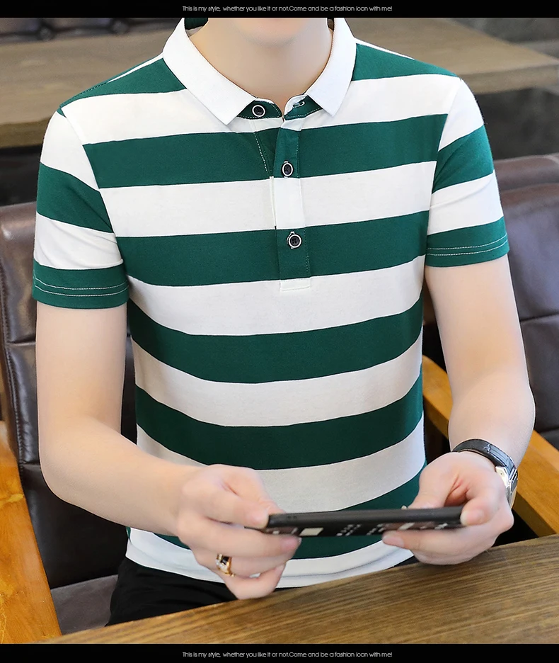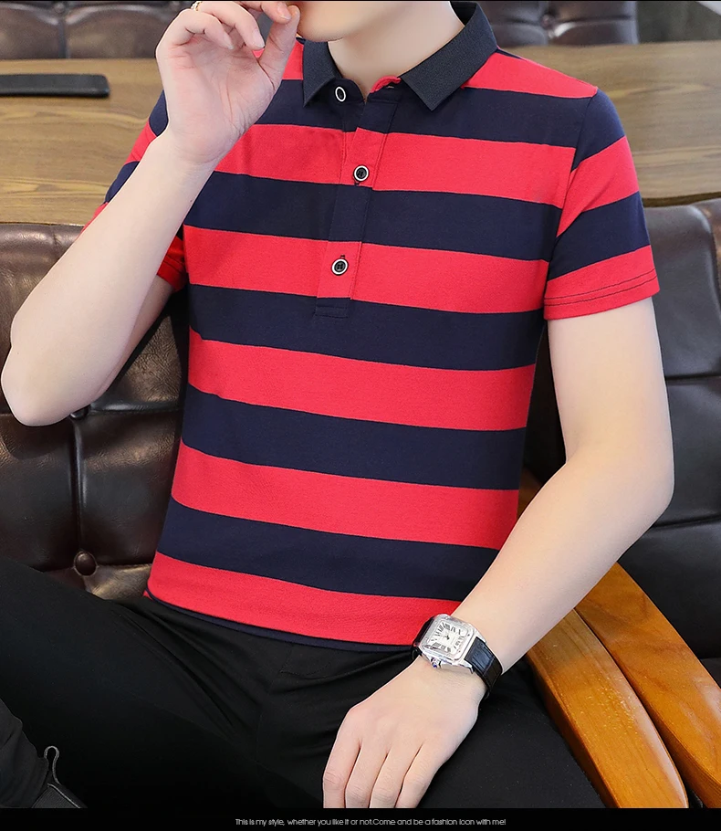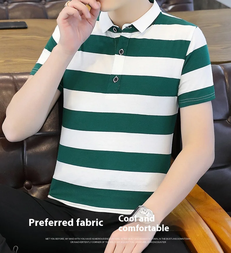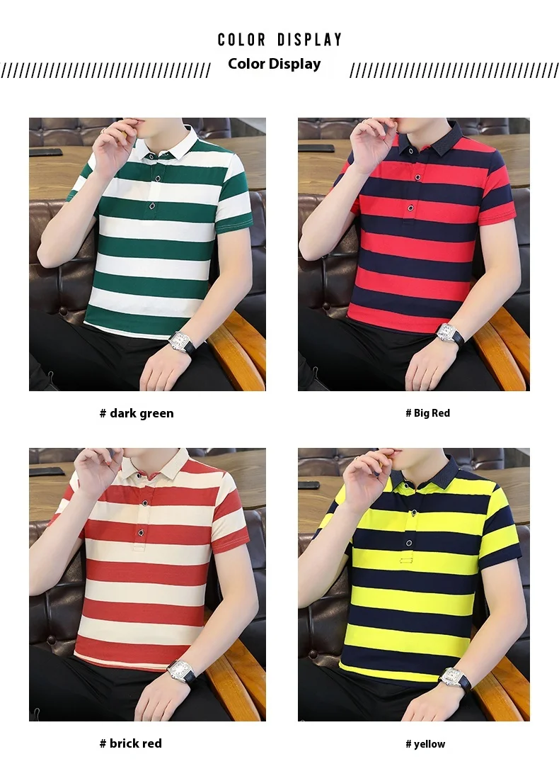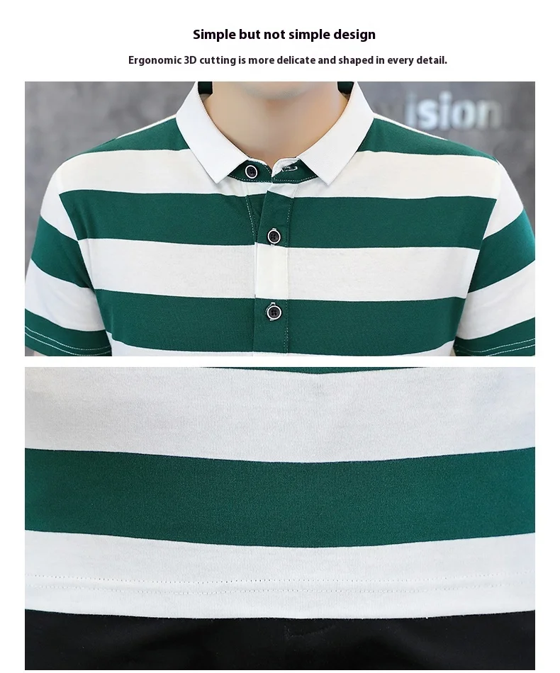 Be the first to review “Men’s Summer New Cotton Half-Sleeved for Polo T-Shirt Geometric Pattern Wide Stripe Lapel Short-Sleeved for Middle-Aged Youth”