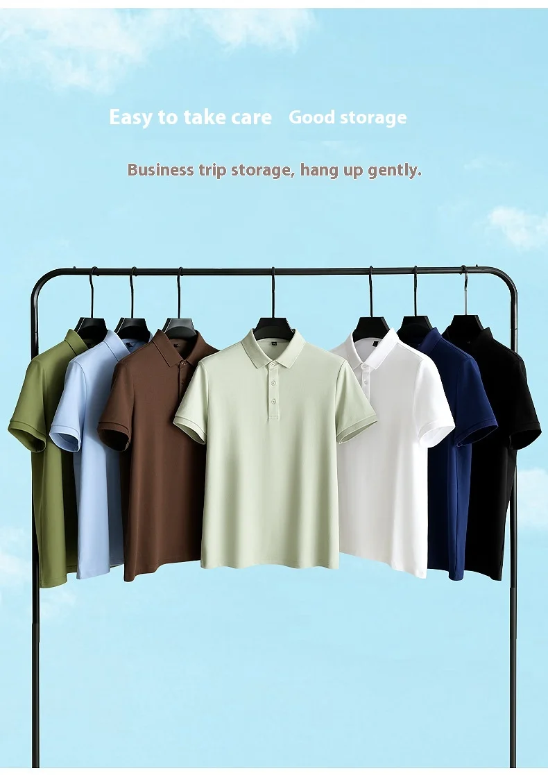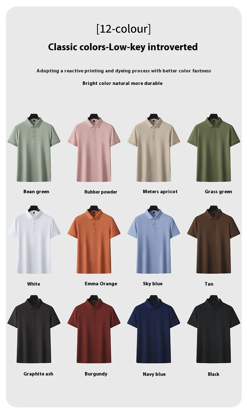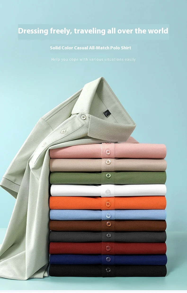 Men’s Summer Short-Sleeved for Polo Shirt Pure Color Loose Knitted Embroidered Lapel Business Casual Ready for Golf Export