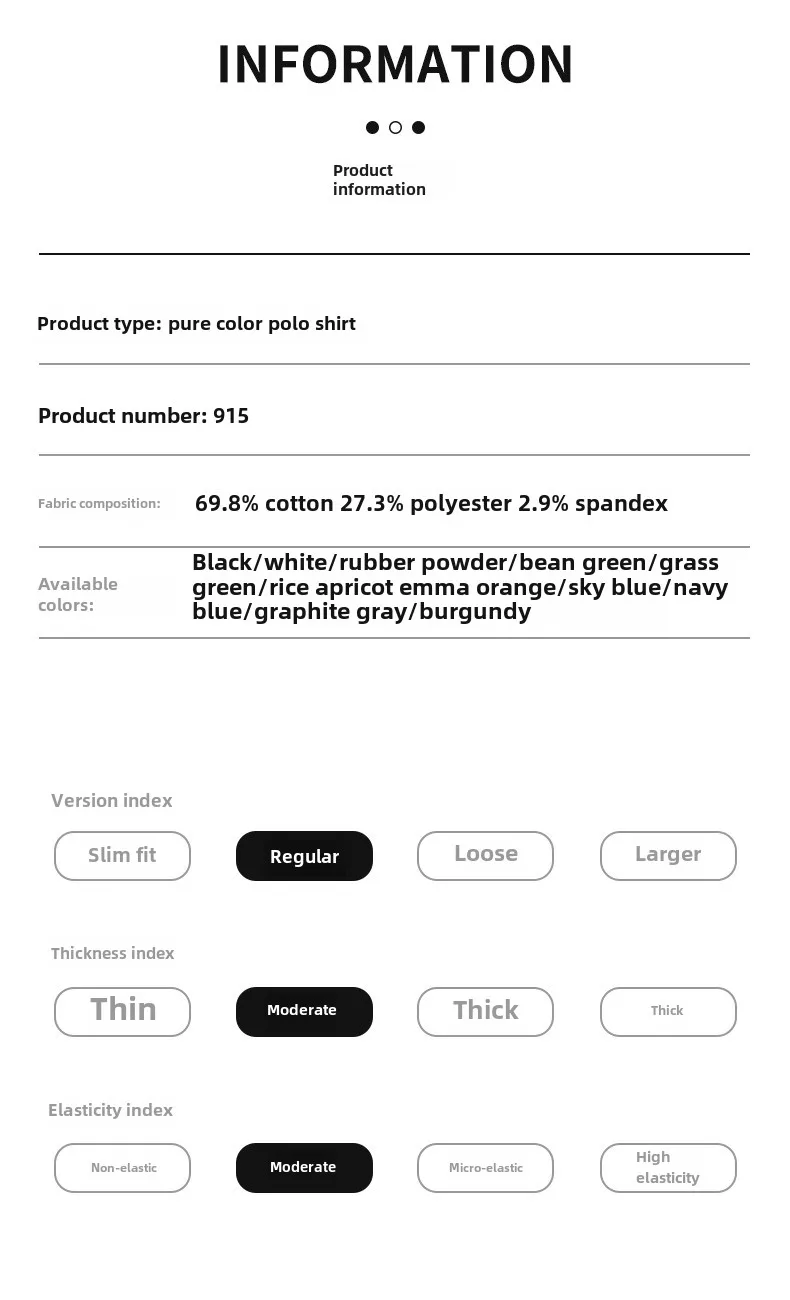 | Color | Apricot, Bean green, Black, Graphite gray, Grass green, Navy blue, orange, pink, Sky Blue, White, Wine red |