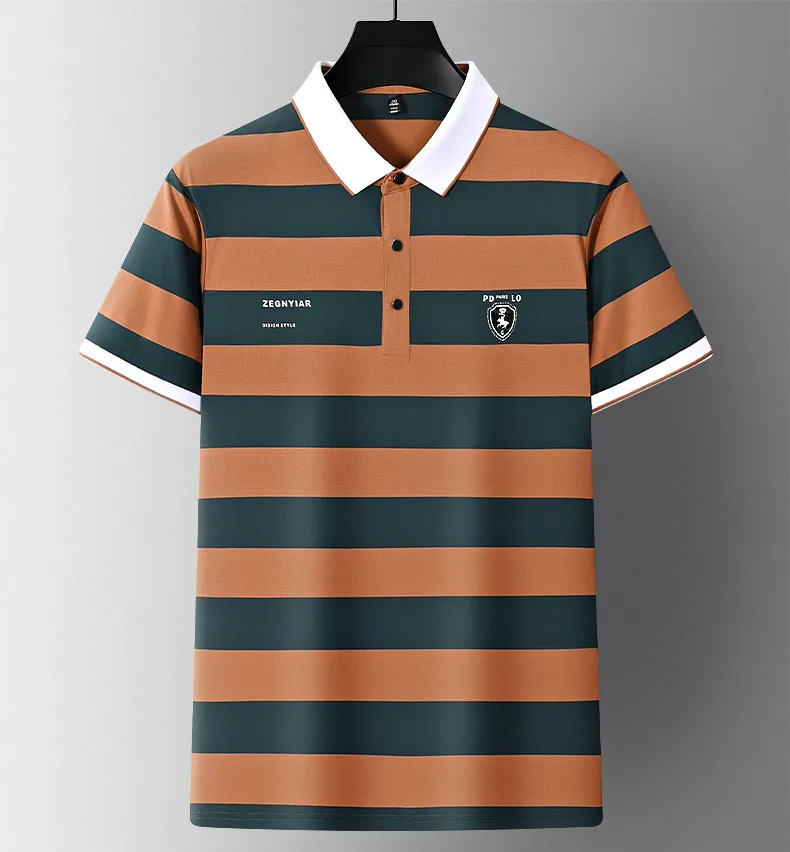 Men’s Trendy Fit Half Sleeve Jersey Knitted T-Shirt High Quality 220 Grams Anti-Wrinkle Striped Custom Logo Print