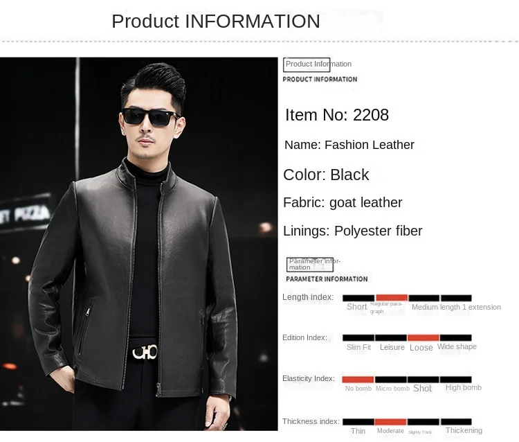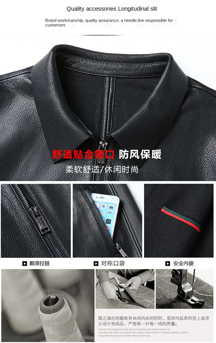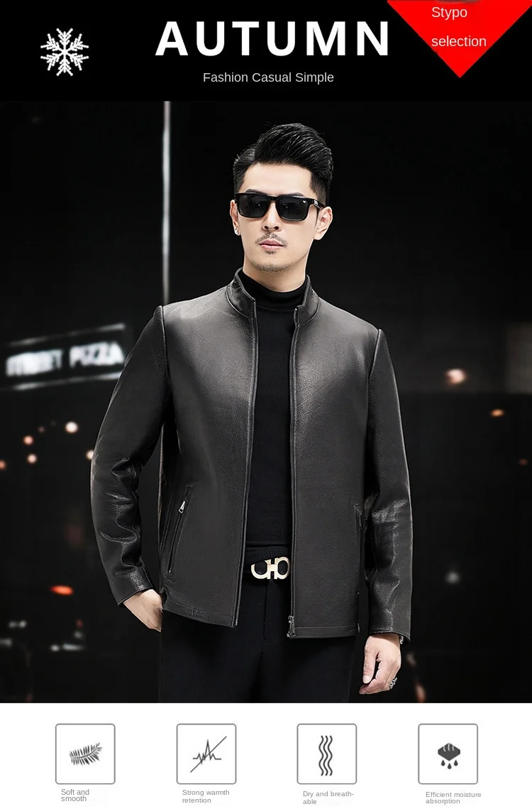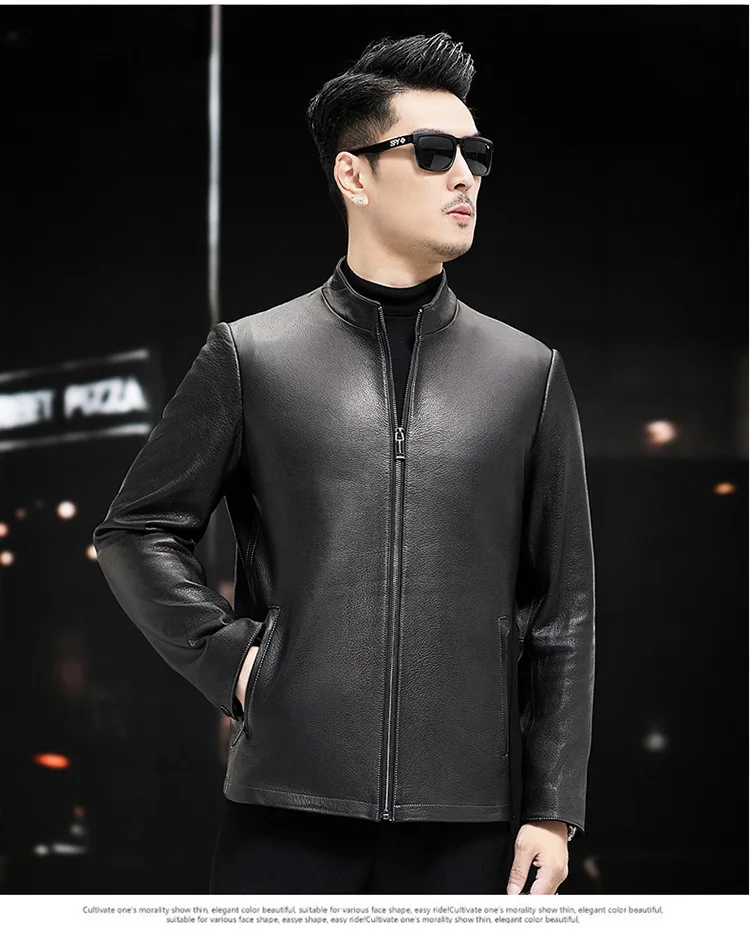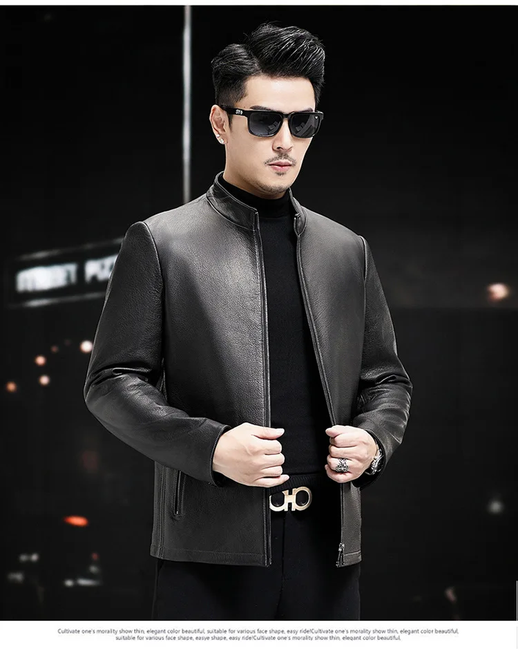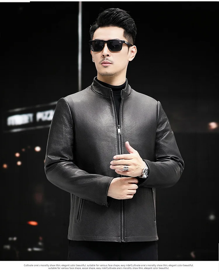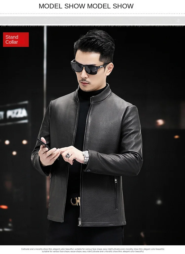 Men’s Trendy Spring Autumn Genuine Sheepskin Leather Jacket Soft Stand Collar ODM Crocheted New Fashion Thin Slim Motorcycle