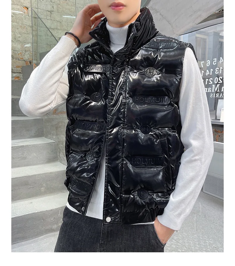 Men’s Trendy White Duck Glossy Waistcoat New Arrival Winter Jacket with Turtleneck and Casual Style Waterproof Zipper Closure