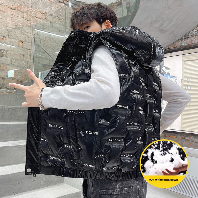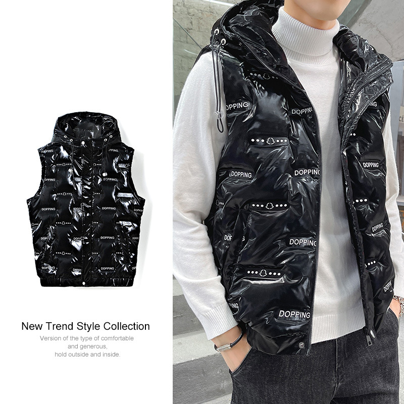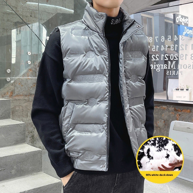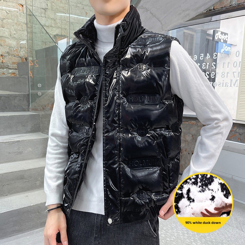 Men’s Trendy White Duck Glossy Waistcoat New Arrival Winter Jacket with Turtleneck and Casual Style Waterproof Zipper Closure