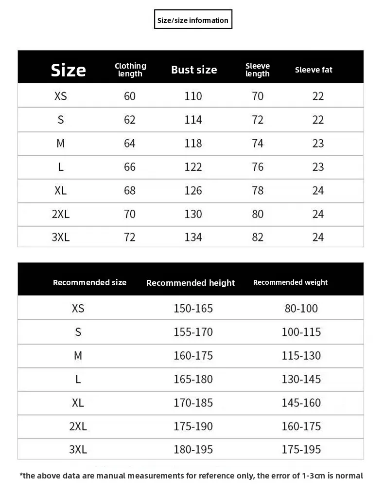| Size | XS, S, M, L, XL, 2XL, 3XL |
