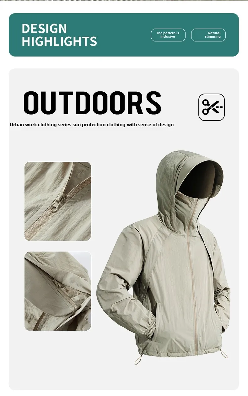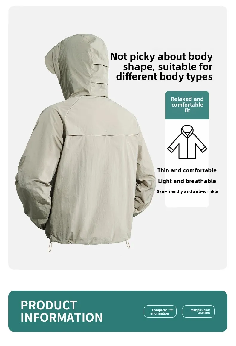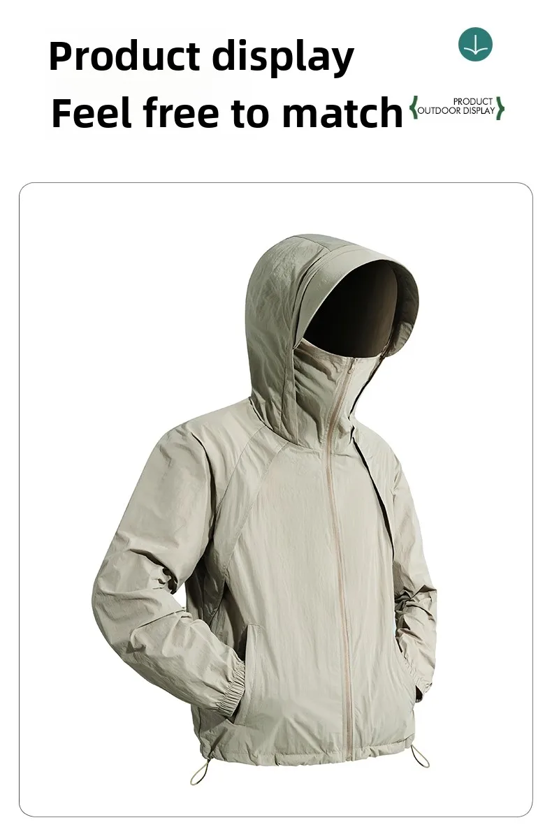 Men’s Ultra-Thin Ice Silk Cycling Jacket Quick-Dry Fitness Windproof Zipper Loose Casual Outdoor Sun Protection Solid Summer