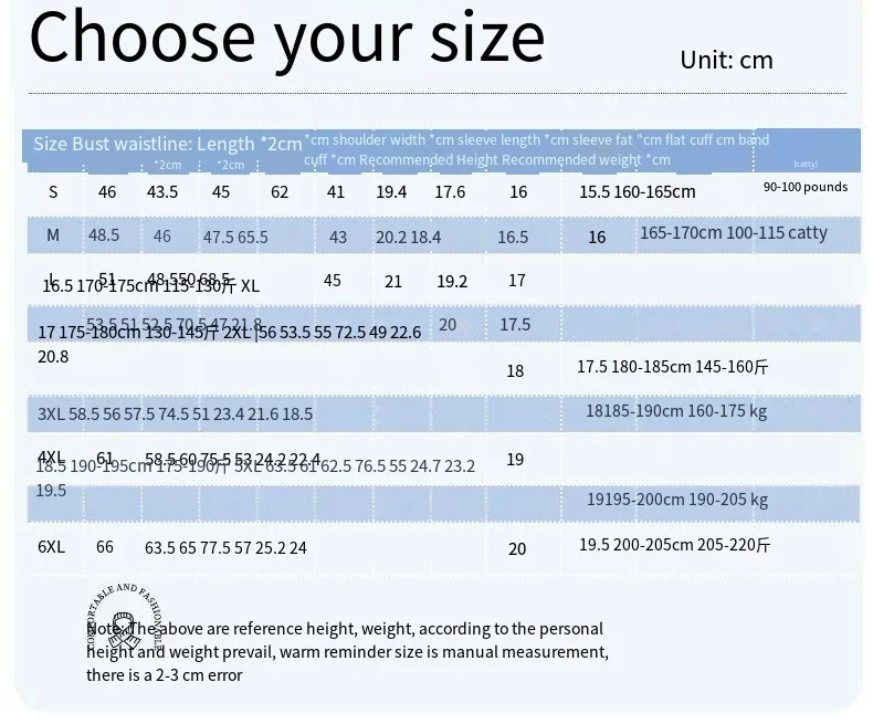 S, M, L, XL, 2XL, 3XL, 4XL, 5XL, 6XL