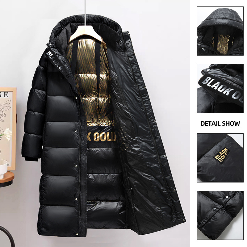 Men’s Vintage Black Gold Jacket Long Winter Coat with Hood Thick Crocheted Poncho Anti-Season Tooling Warm Clearance Brand Women