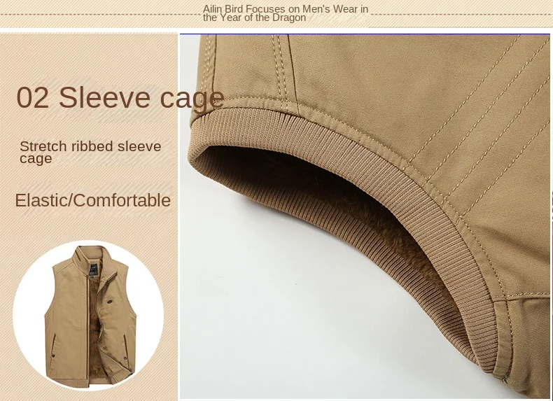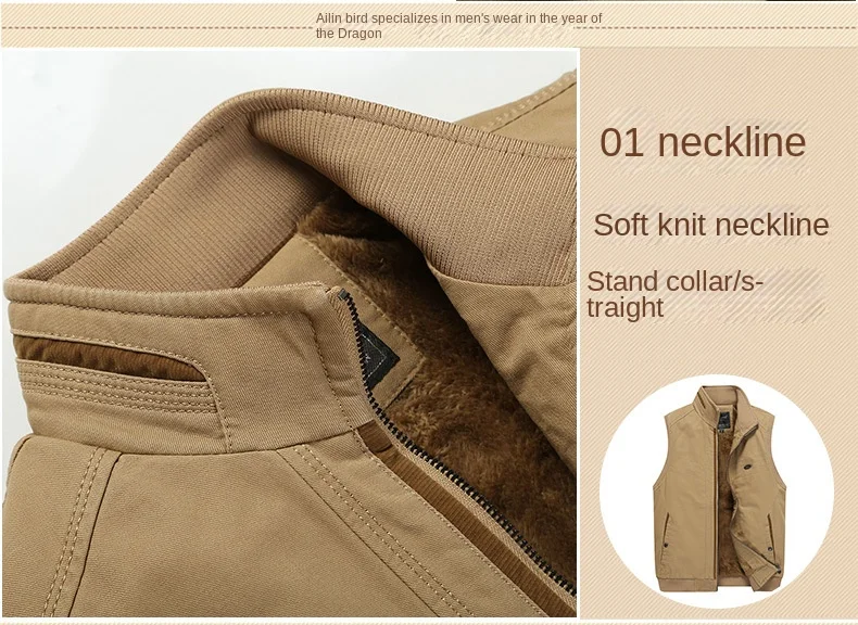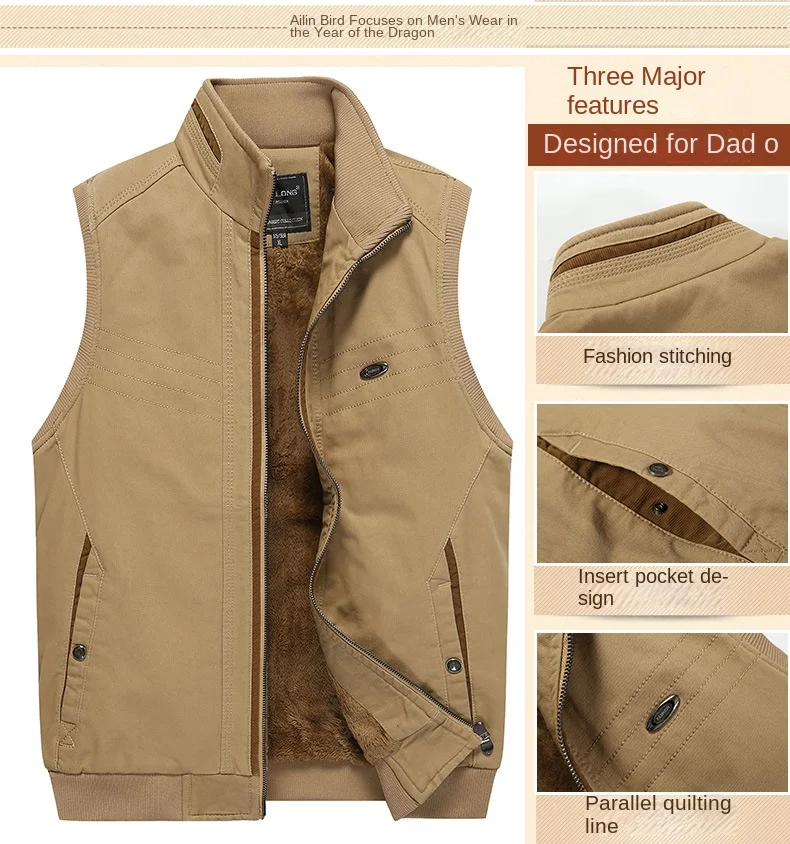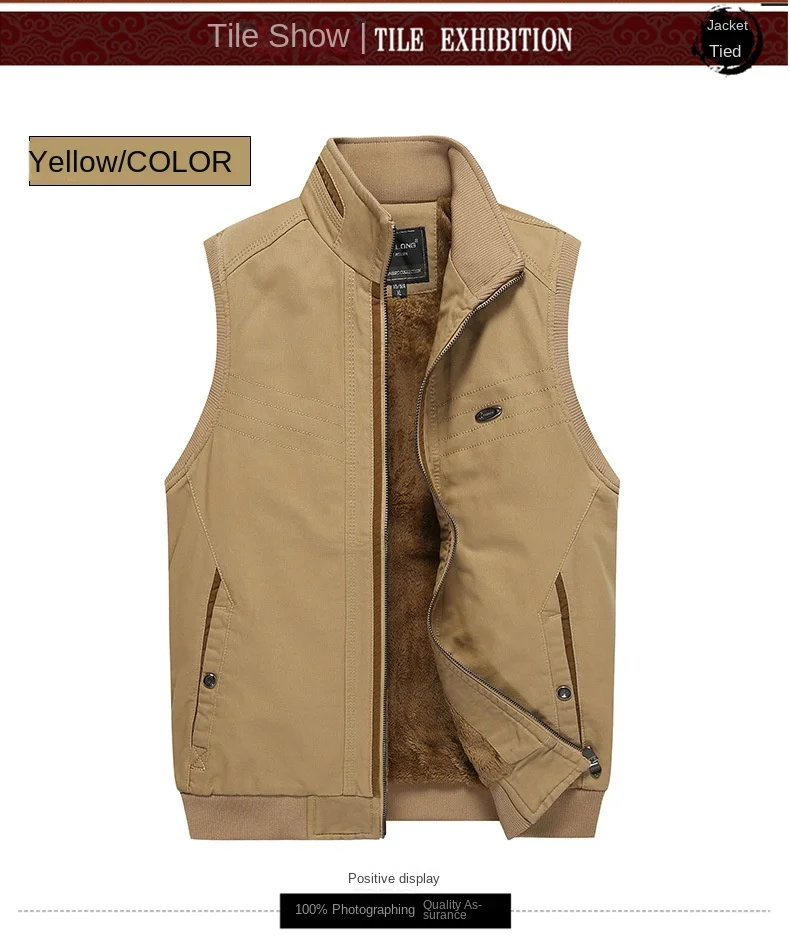 Men’s Winter Sleeveless Vest Porter Sherpa Lining Cotton Filled Logo Decorated Travel Photo Fishing Jacket Outer Wear Fabric