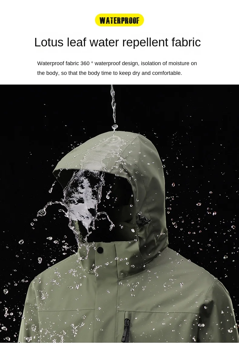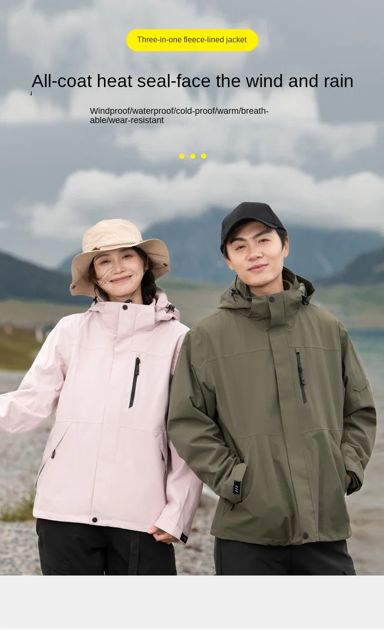 Men’s Women’s GB/T 32614 New Outdoor Three-in-One Full Heat Seal Windproof Waterproof Jacket Silk Fleece Casual Winter XL Size