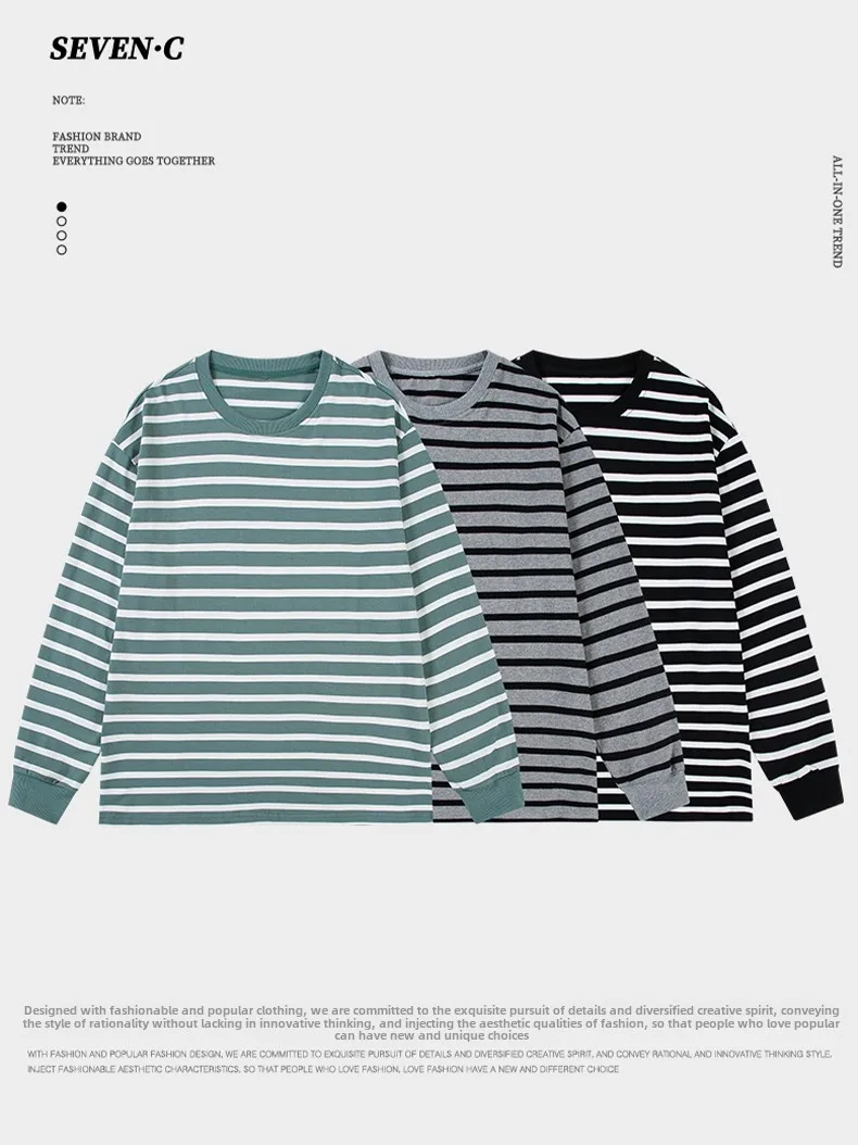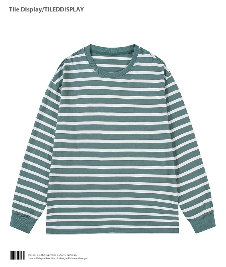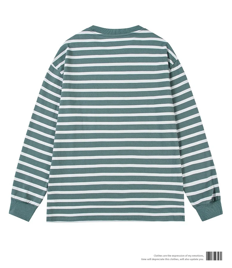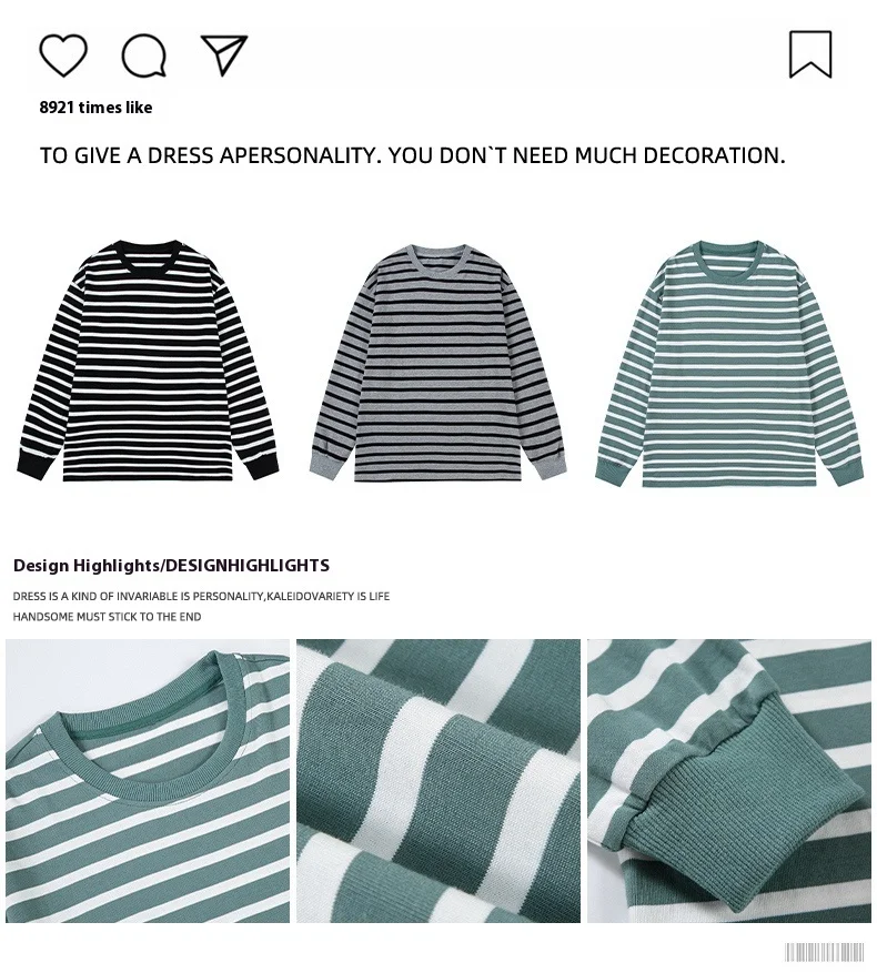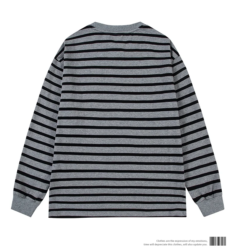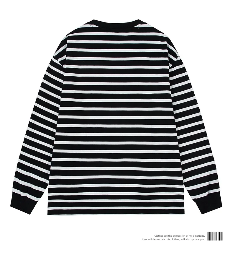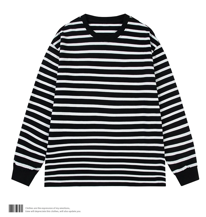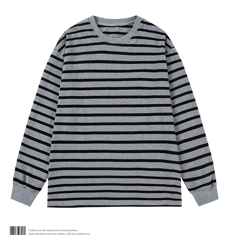 Men’s Women’s Hong Kong Striped Sweatshirt 100% Cotton Long Sleeve T-Shirt Loose Fit Solid for Spring Autumn Outdoor Activities