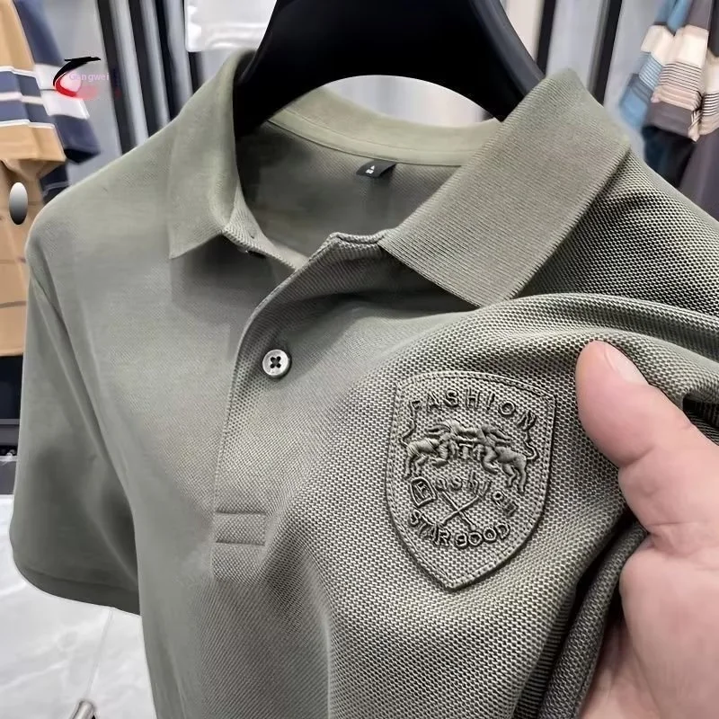 Men’s XL Big/Tall Golf Polo Shirts Customizable Embroidered Logo Casual Knitted Fabric Silk Plain Print Short Dark Short