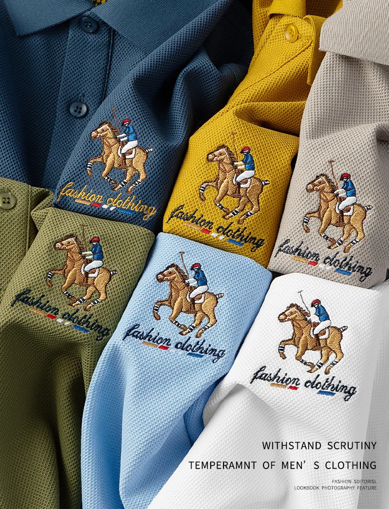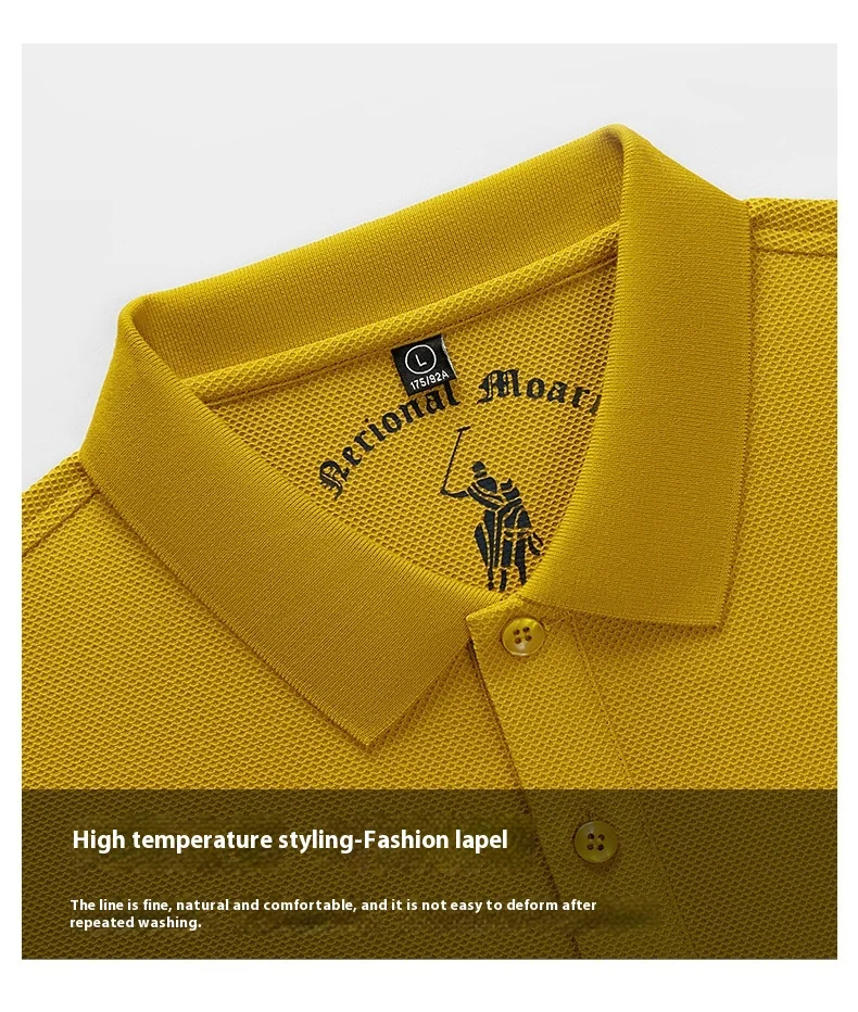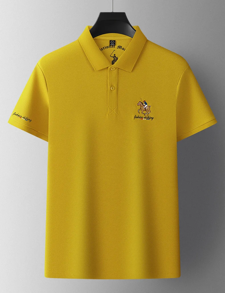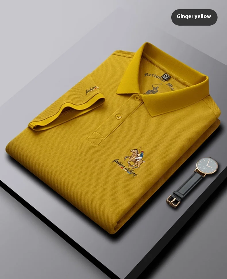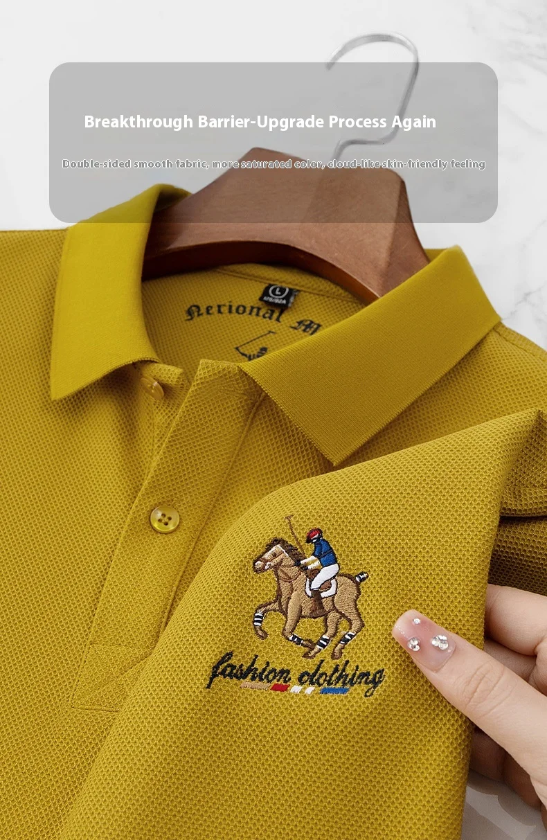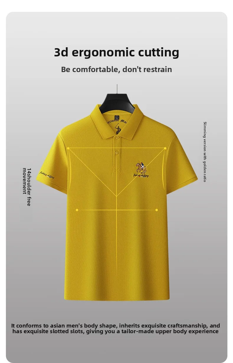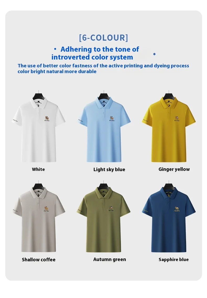 Men’s XL Cotton Short-Sleeved for Polo Shirt Breathable Woven Twill Fabric Solid Embroidered Button-Painted Printed