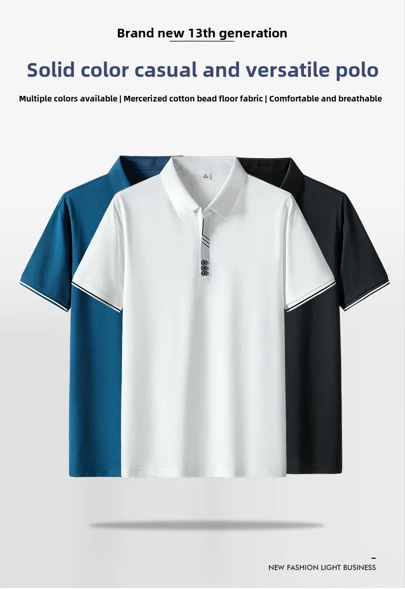 Men’s XL Half-Sleeve Summer for Polo Shirt Solid Striped Print Casual Business Golf High Anti-Pilling Pure Cotton Turn-Down Butt