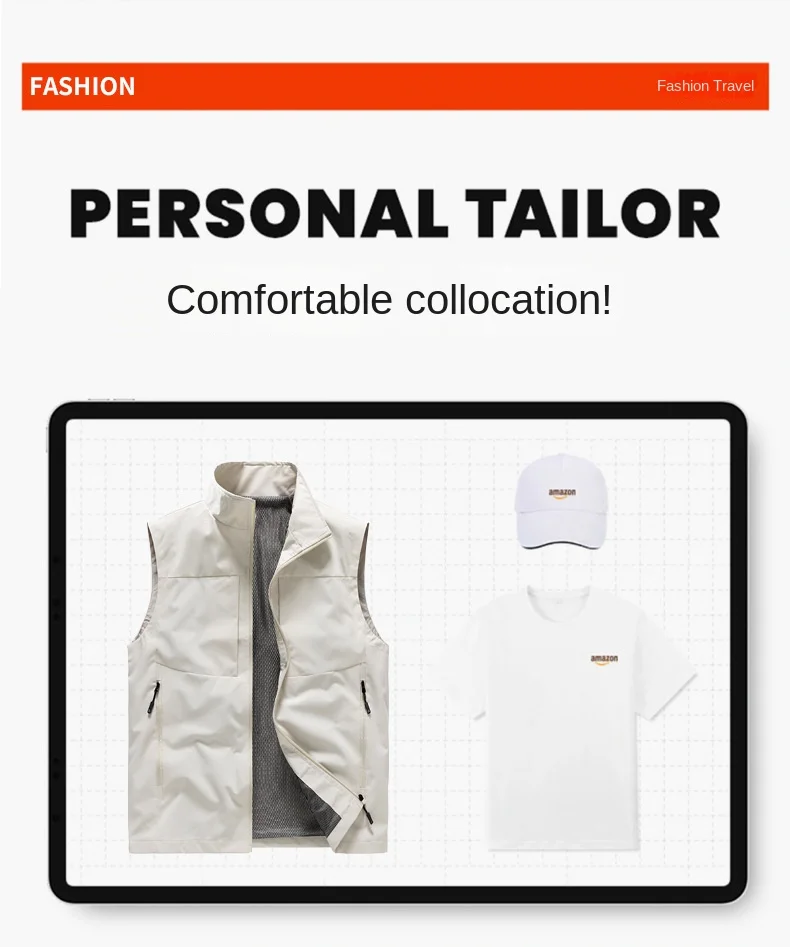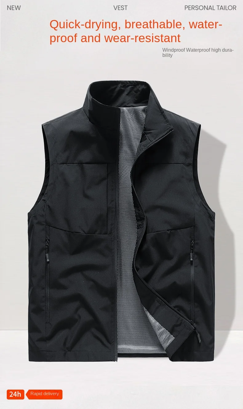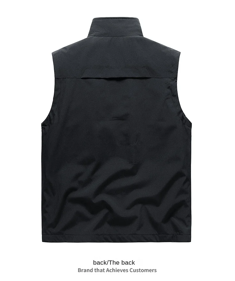 Men’s Zipper Closure Casual Waistcoat Down-Filled Multi-Pockets Trendy Mandarin Logo Workwear Vest for Spring Autumn Winter