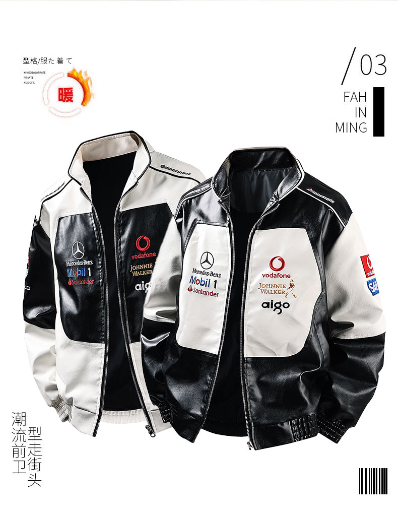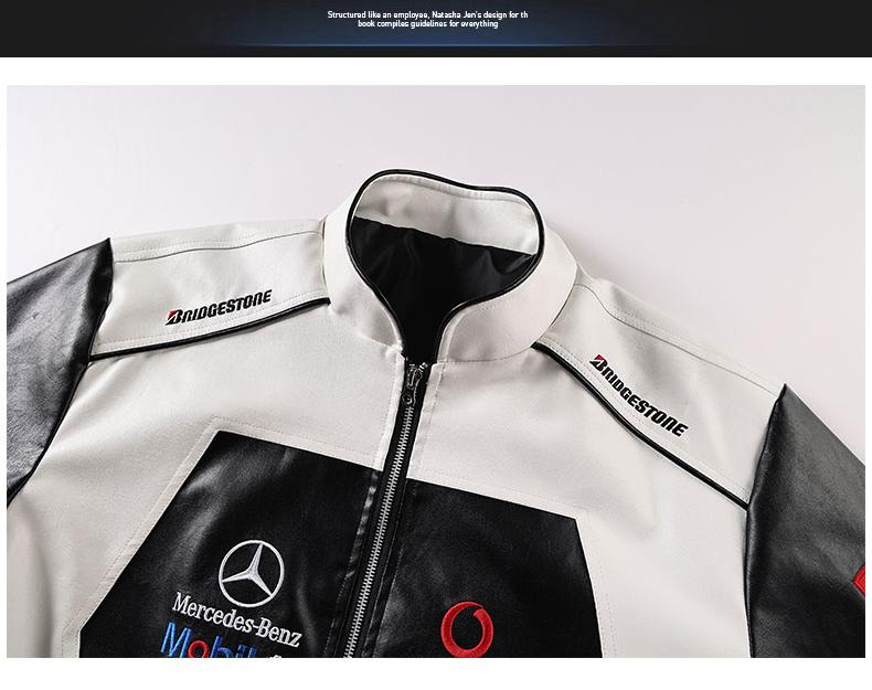 Mercedes-benz embroidered leather jacket 2025 Spring Fashion brand leather jacket men thickened PU leather motorcycle jacket Baseball cotton jacket Couple cotton coat Motorcycle flight jacket
