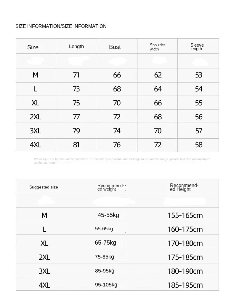 | Size | M, L, XL, 2XL, 3XL, 4XL |