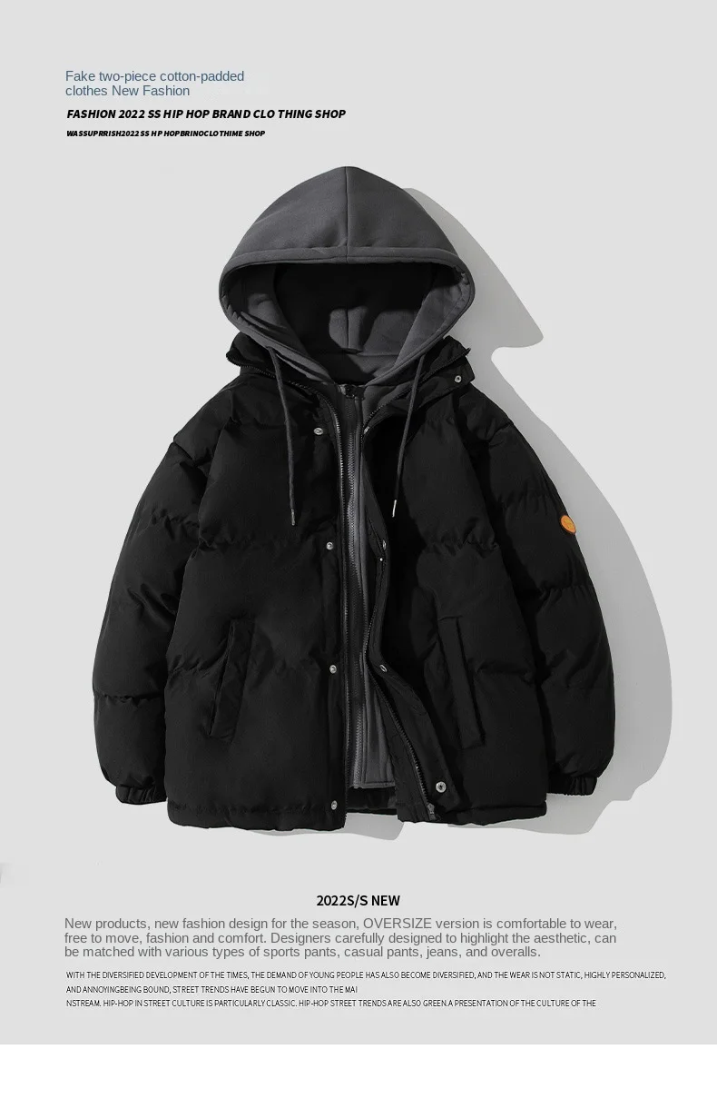 New Arrival Men’s Winter Thickened Hooded Overalls Coat Cotton-Padded Quilted Jacket Stand Heated Wholesale Foreign Trade