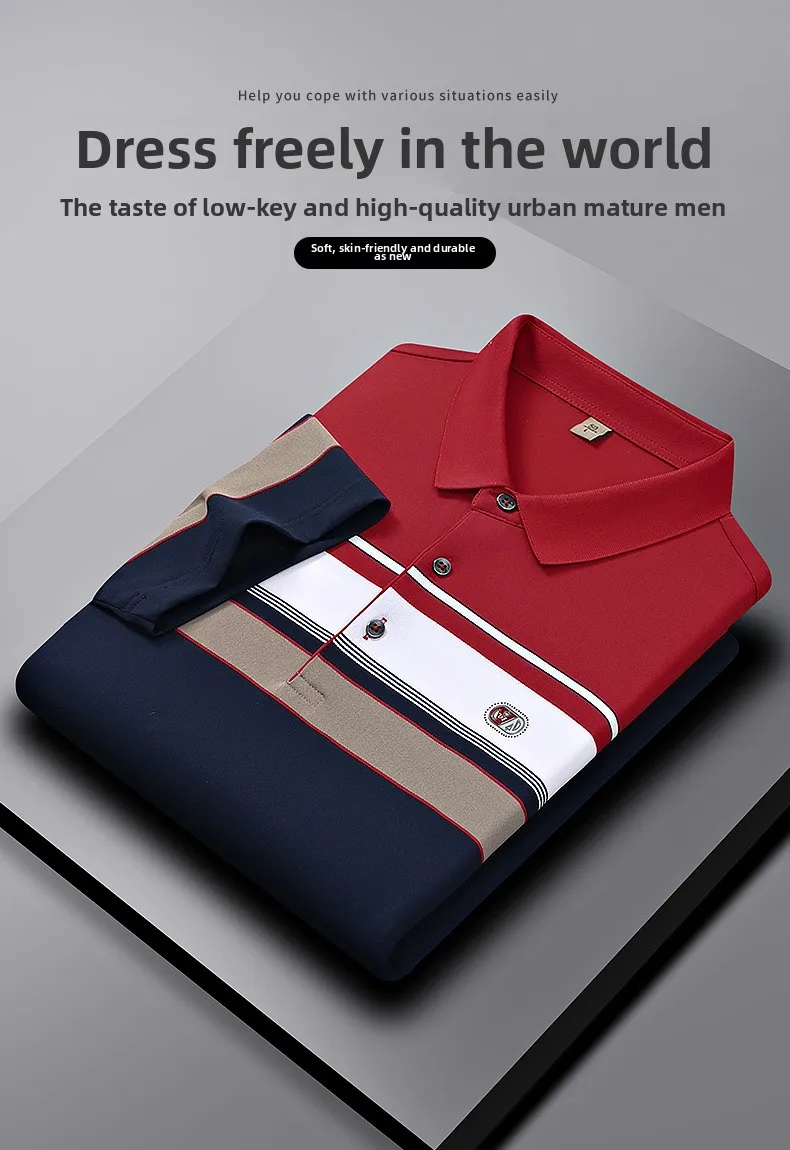 New Short-Sleeved Anti-Pilling Knitted Lapel for Men’s for Polo Shirts Comfortable T-Shirt for Middle-Aged