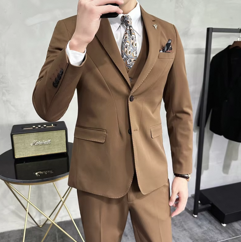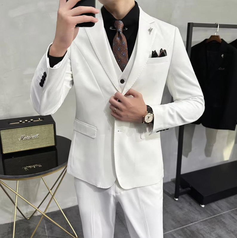 Single Breasted Groom’s Wedding Dress Men Slim Fit Business Suits 3 Pieces Blazer Plus Size Solid Color Men’s Suits