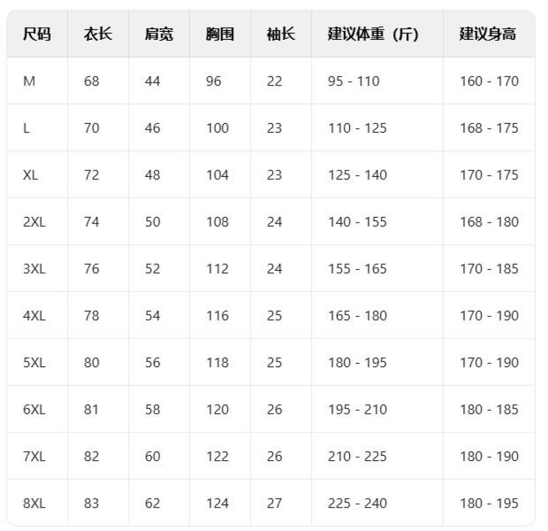 | Size | L, XL, 2XL, 3XL, 4XL, 5XL |