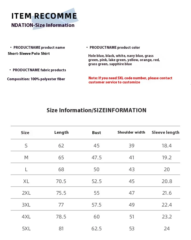 | Size | S, M, L, XL, 2XL, 3XL, 4XL |