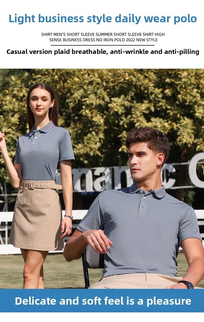 Summer Public Edition Anti-Pilling for Polo Shirt T-Shirt for Men Women 100% Polyester Solid Color Short Lapel Sleeve Jersey