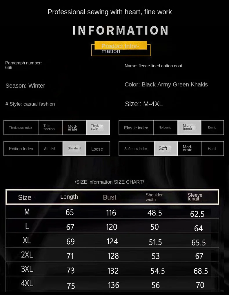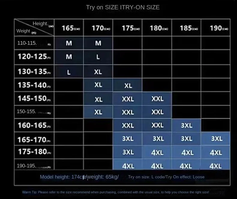 | Size | M, L, XL, 2XL, 3XL, 4XL |
