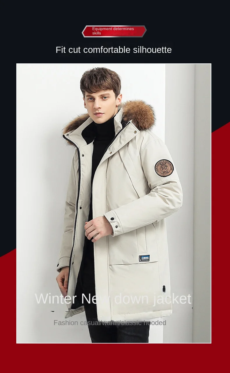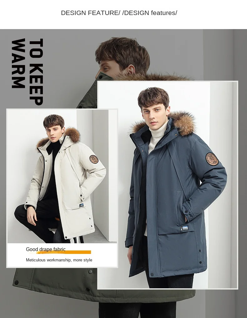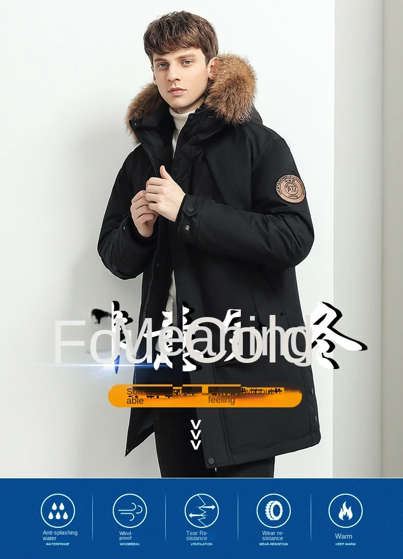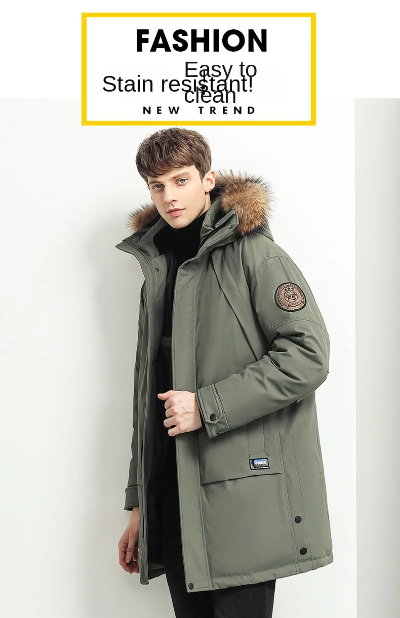 Trendy Brand Mid-Length Winter Fleece Jacket for Men with Zipper Closure Warm Thick Simple Wind Hat Long Foreign Trade Clearance