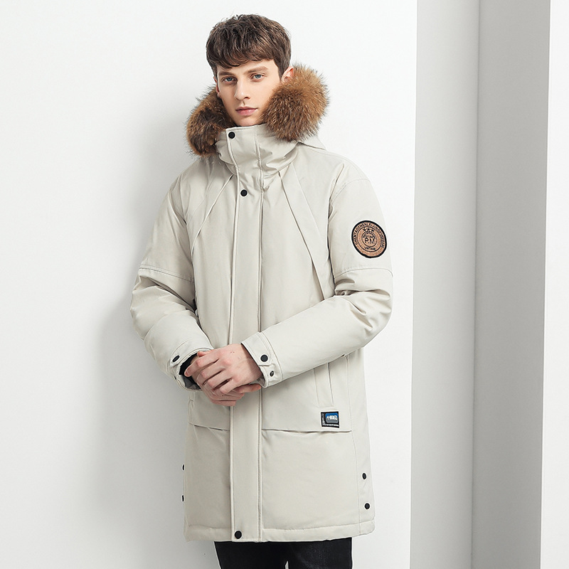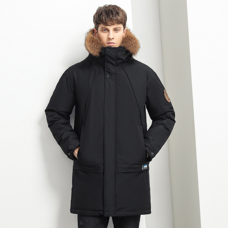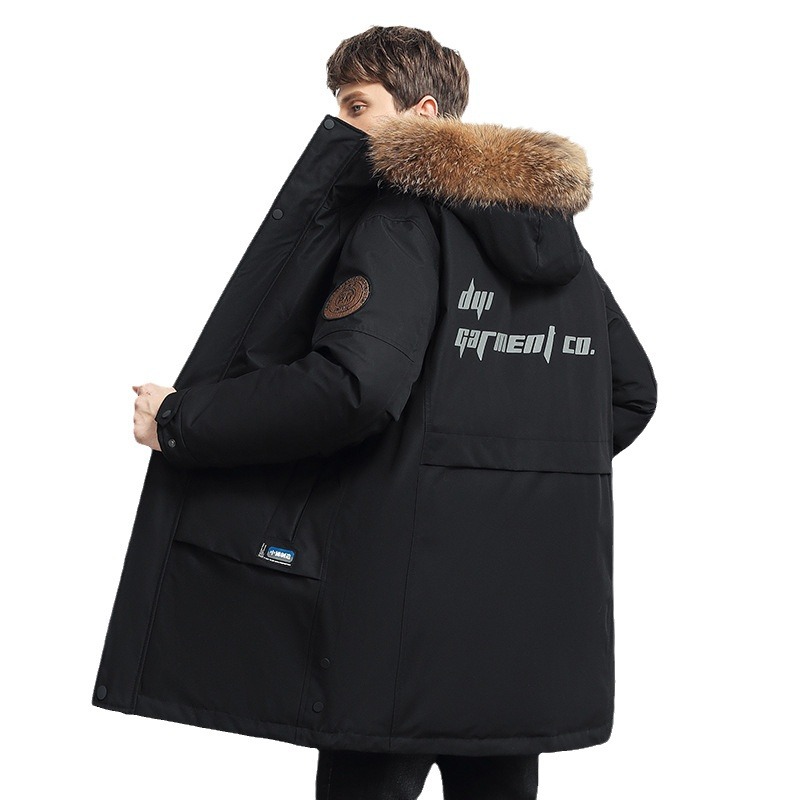 Trendy Brand Mid-Length Winter Fleece Jacket for Men with Zipper Closure Warm Thick Simple Wind Hat Long Foreign Trade Clearance